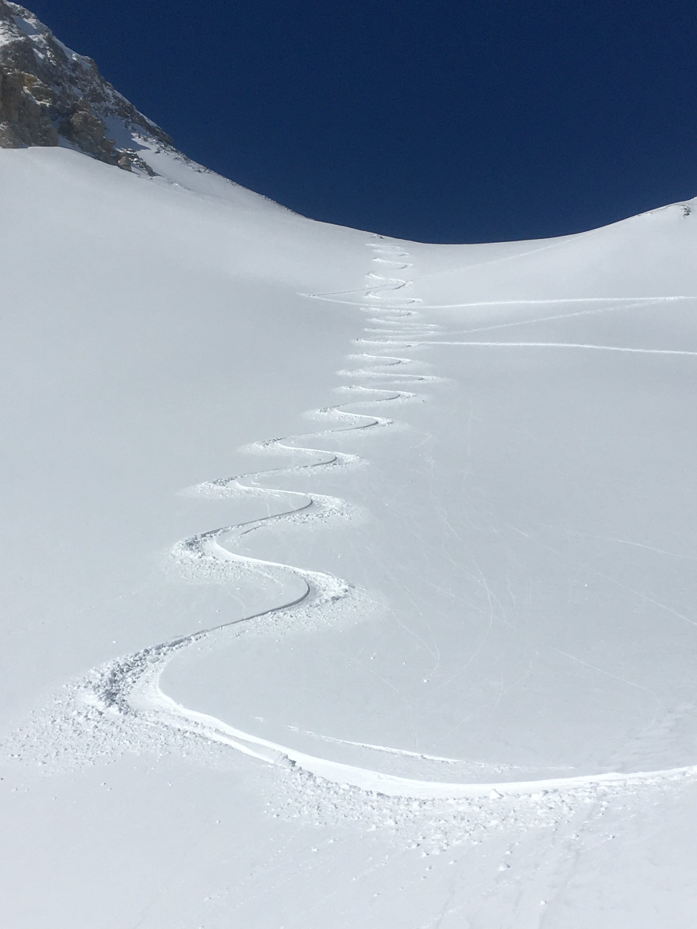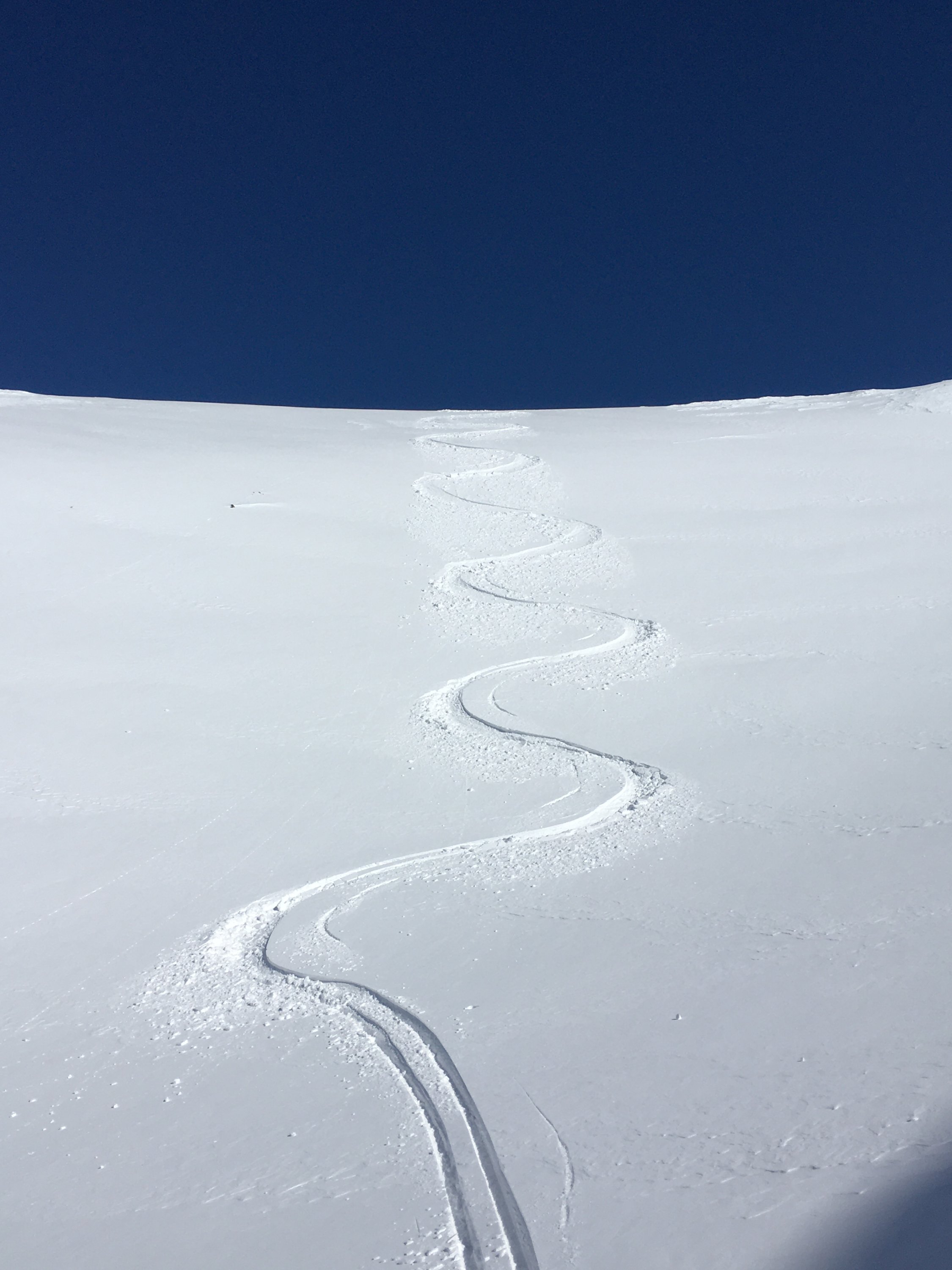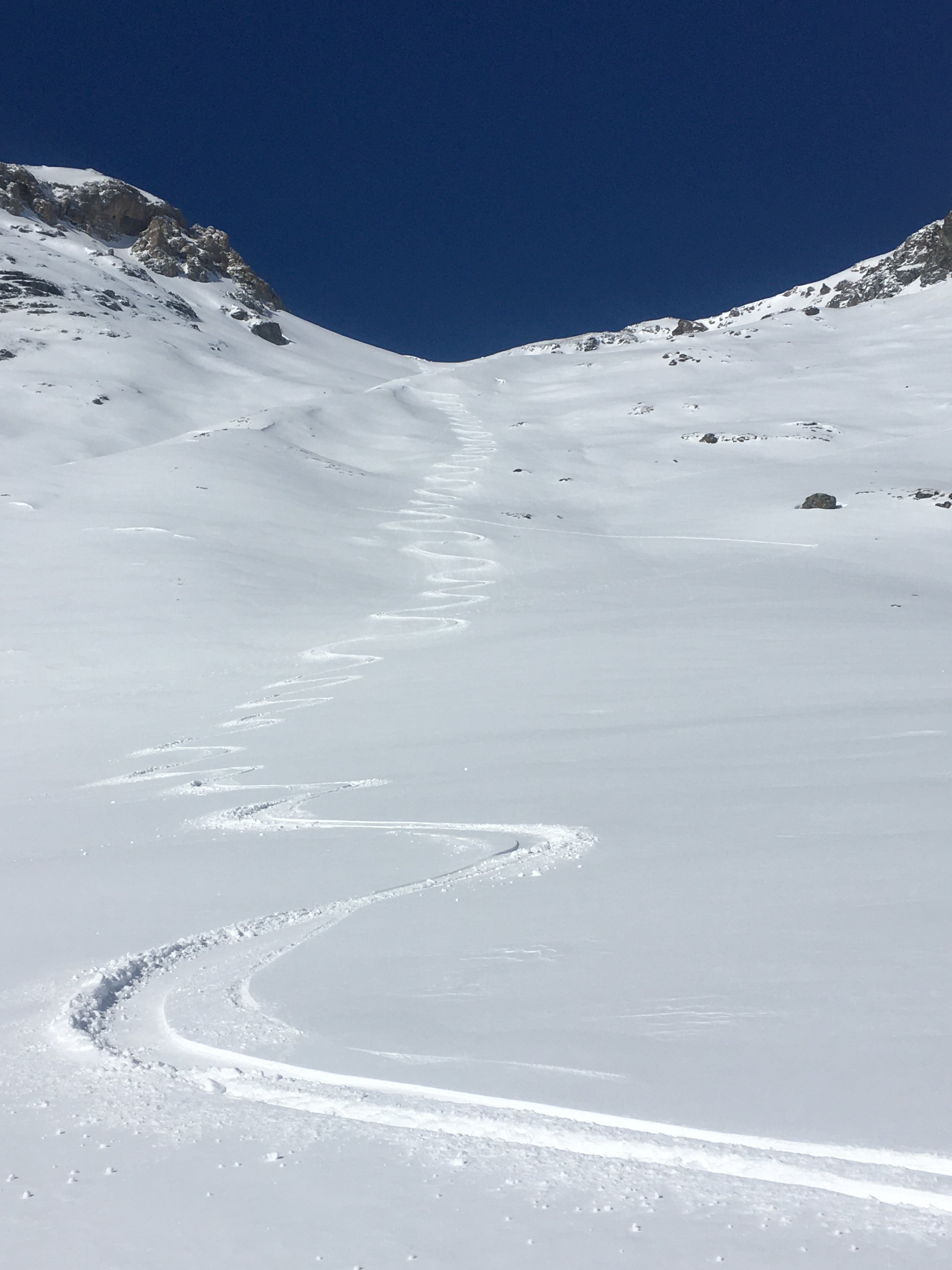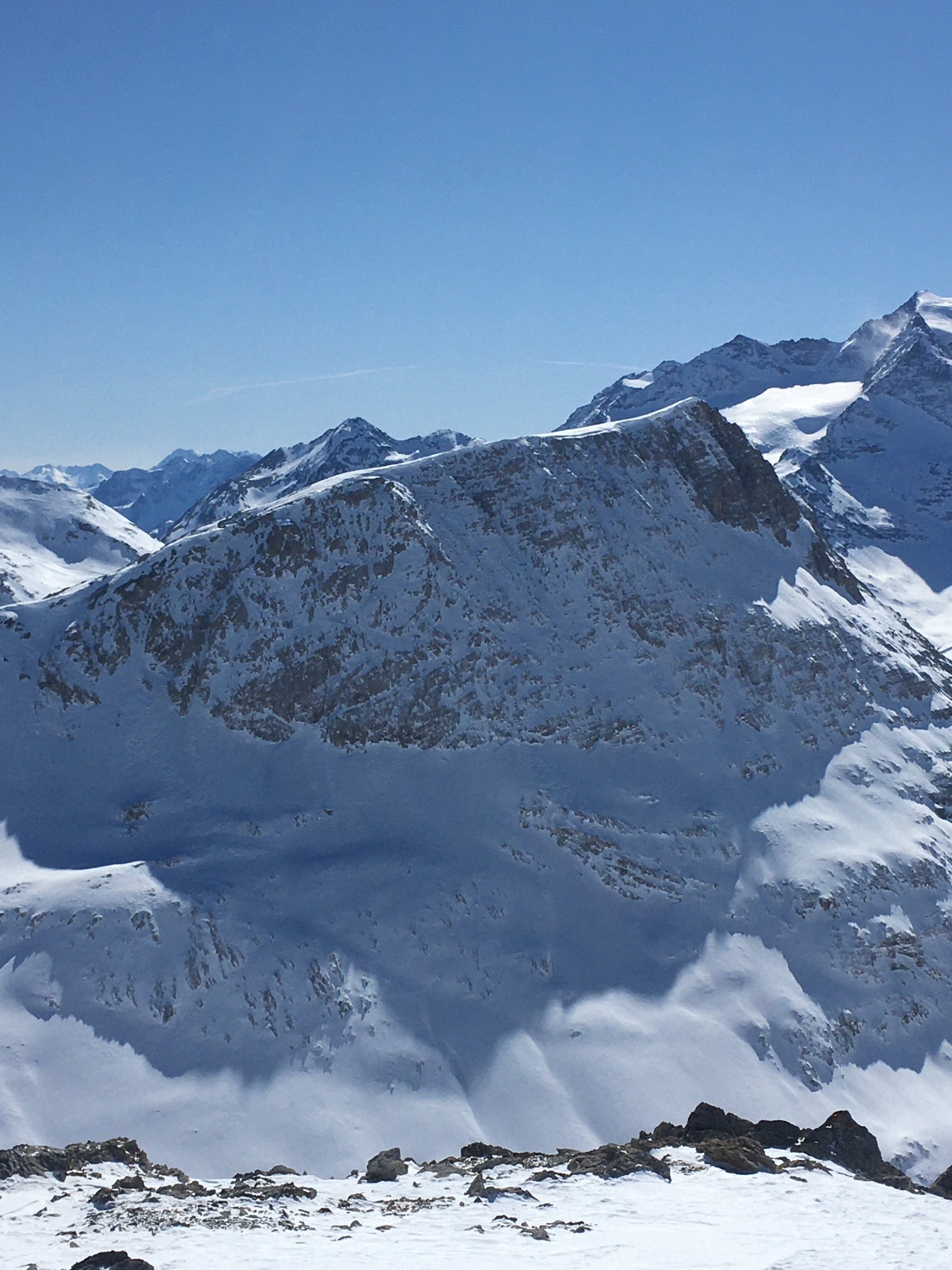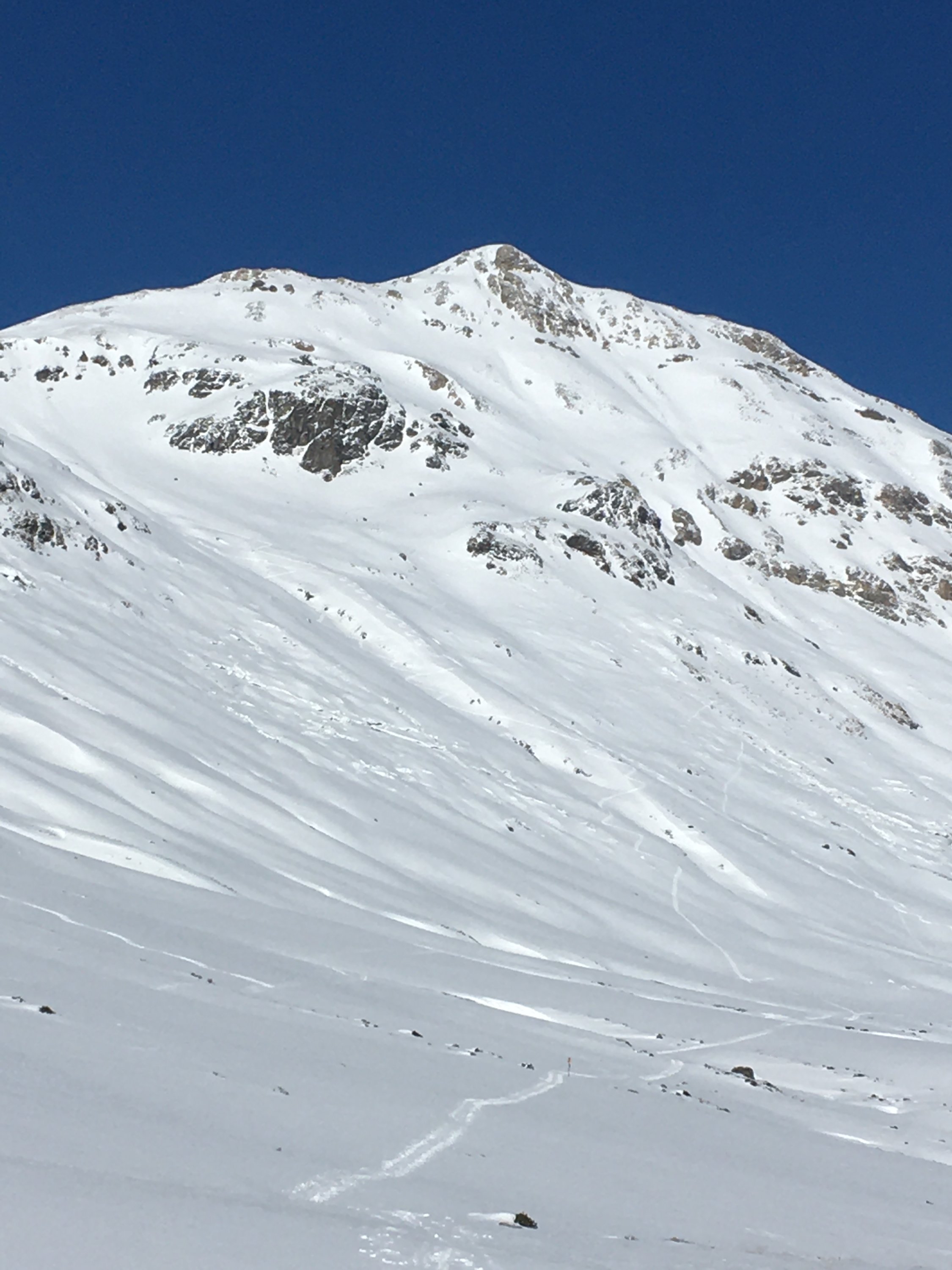 War diesen Winter bis jetzt die schönste Abfahrt. Am Morgen ab Val Tschüffer immer in der Sonne. War alleine am Berg. Eine Gruppe Richtung Piz Pischa, waren etwas spät unterwegs, um 13.30 etwa auf Höhe 2800 m.