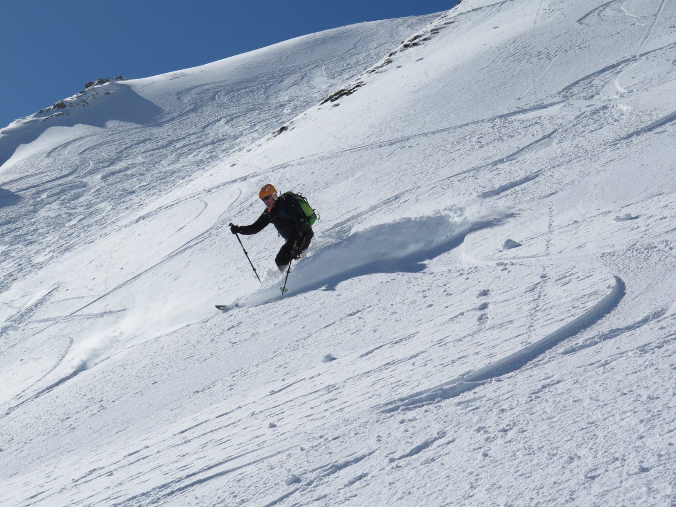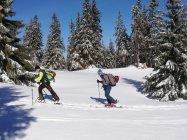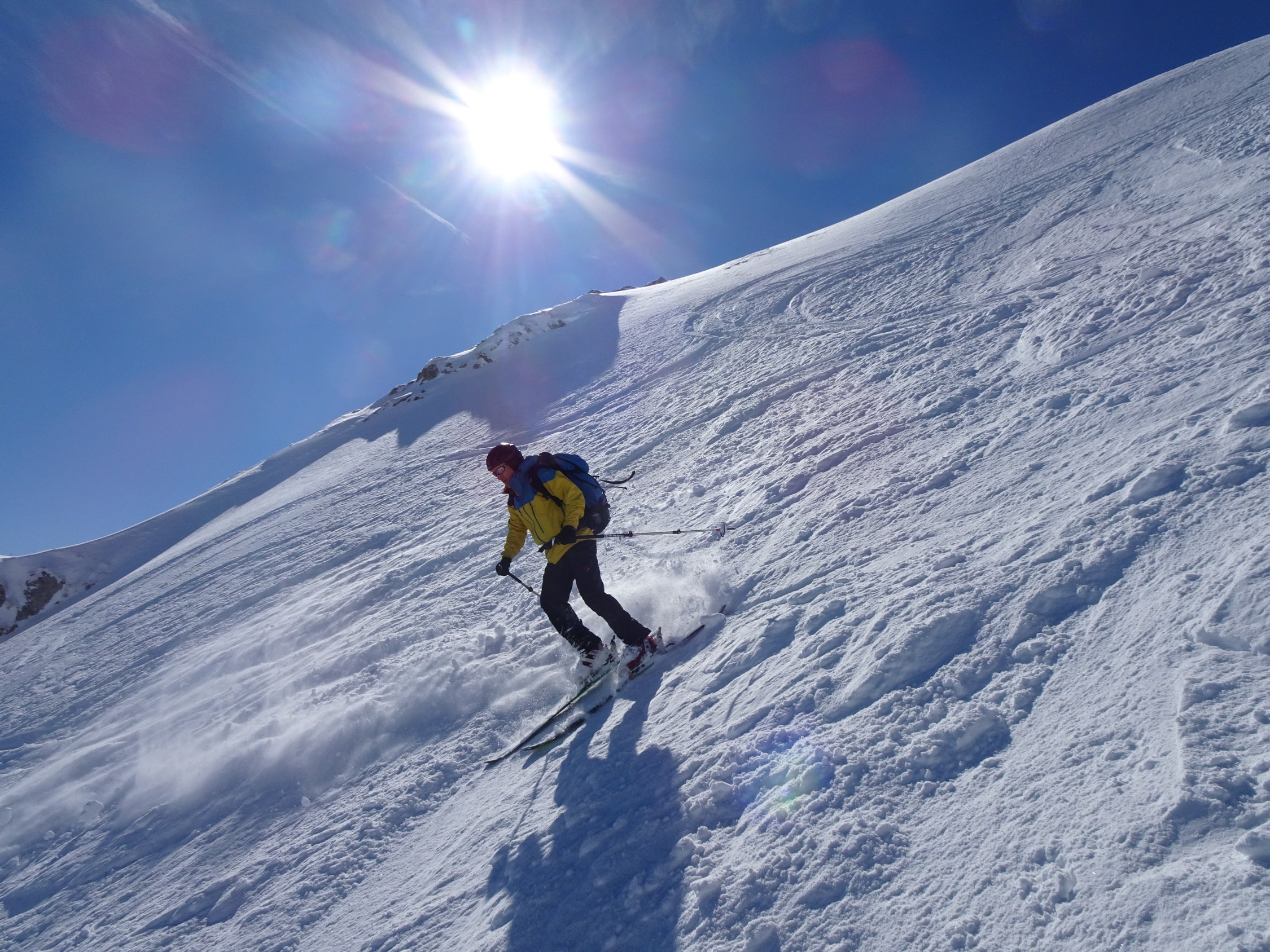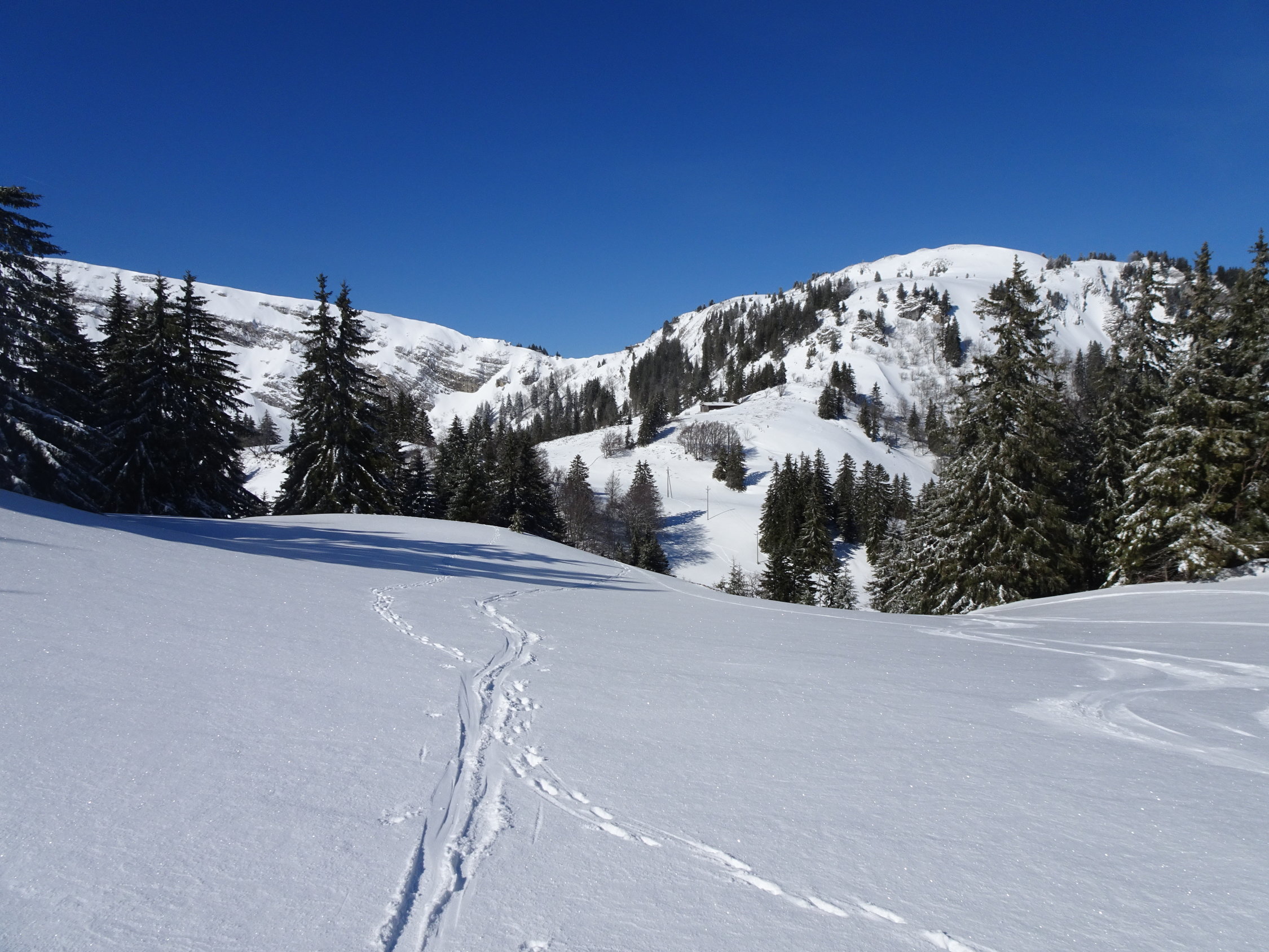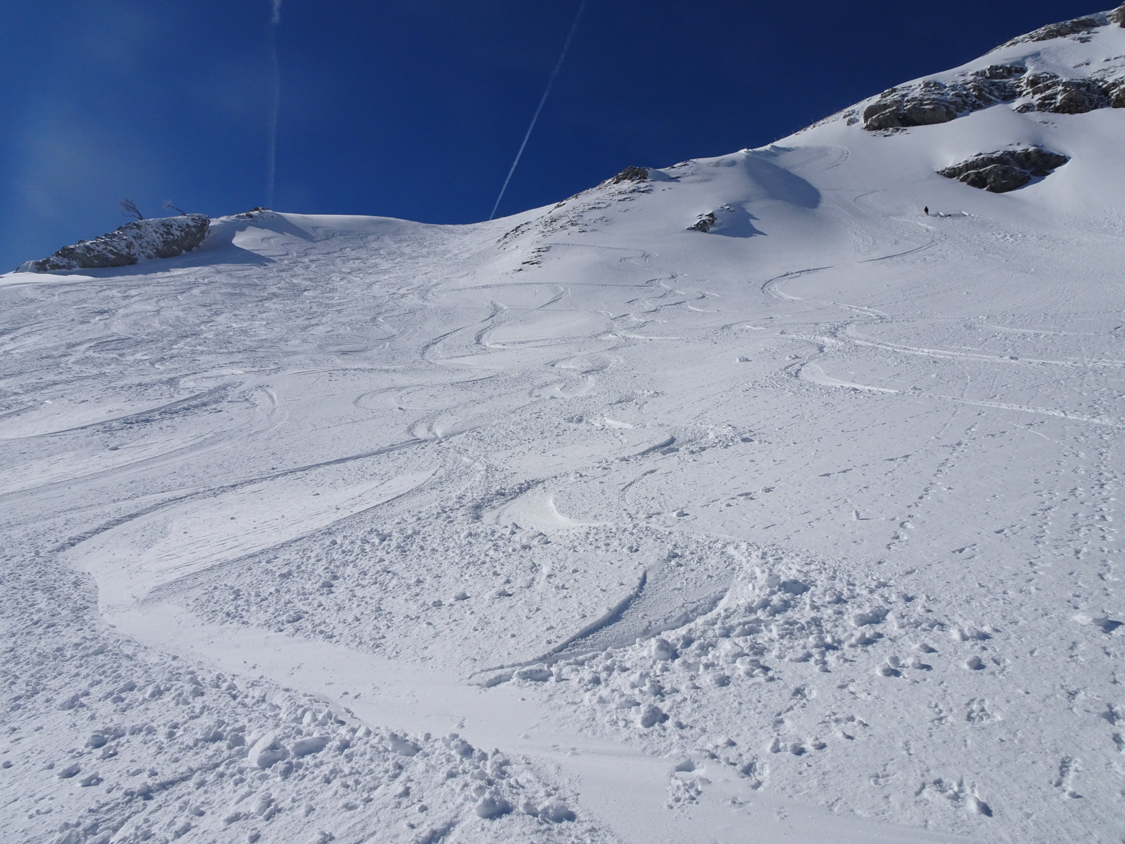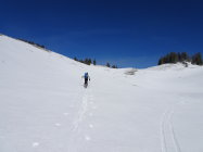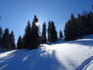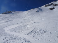 Schnee: meist Pulver, an stark sonnigen Stellen(Querung von Chalet des Apprentis zum Col de Porte, Sulz)