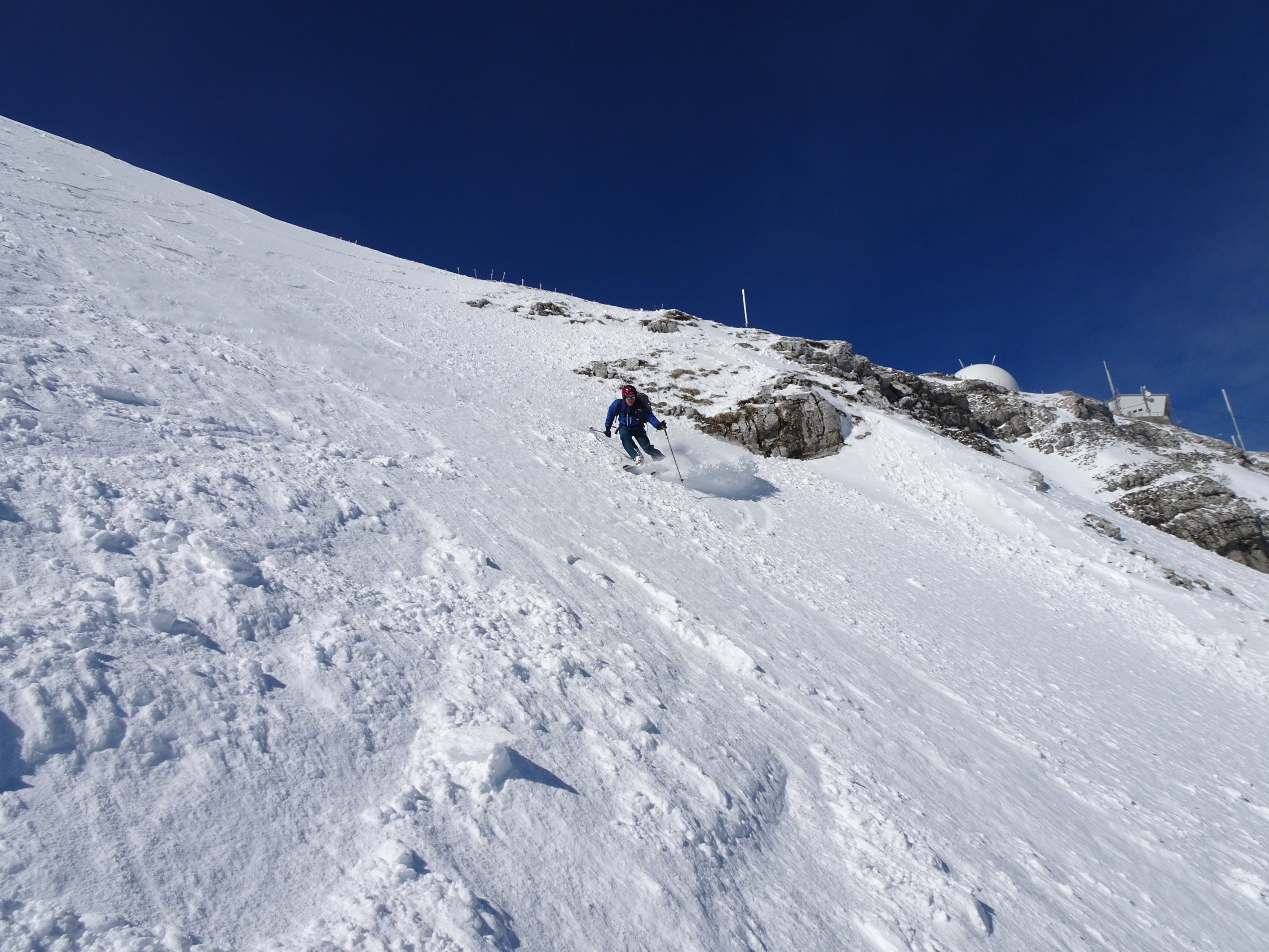 Wunderbare Rundtour auf den zweithöchsten schweizer Juragipfel. Imposannt und recht alpin wirkt die Ostflanke des La Dôle und bietet sehr lohnende Abfahrten. Mit dieser Rundtour bekommt man vom Skirummel auf der Nordseite nicht sehr viel mit(nur am Nordgrat bzw. am Gipfel). Sehr lohnende Tour. Speziell natürlich bei solchen Schnee- und Wetterverhältnissen.