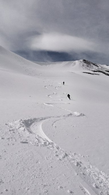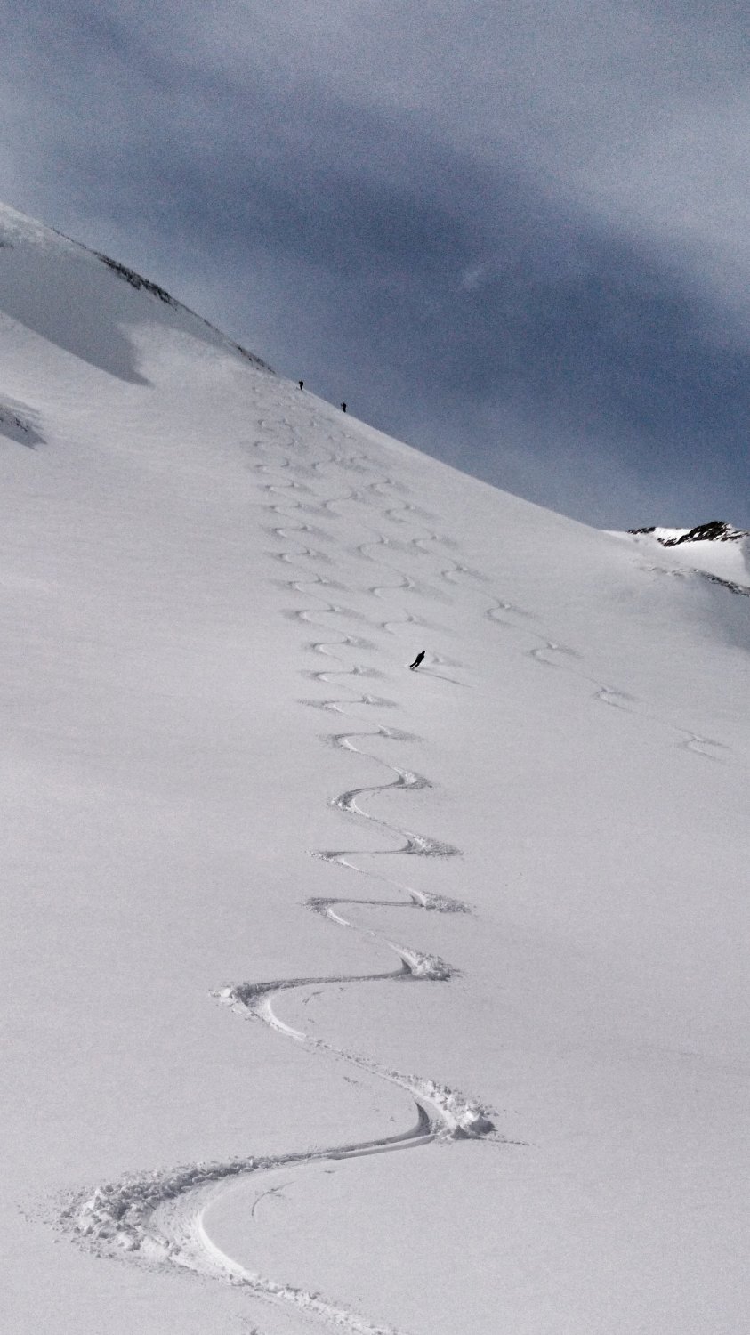 Abfahrt bis oberhalb von Spalti unter Schwarze Schopf ausgezeichnet. Schnee ist zwar teilweise etwas gepresst aber trocken und sehr gut zu fahren.