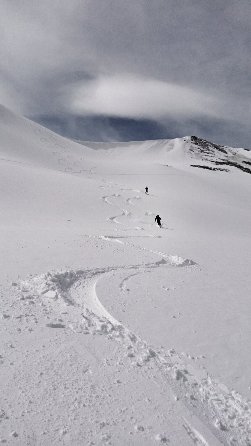 Ab da / unterhalb 2000m ist die Schneedecke komplett durchnässt. Abfahrt ins Soustal jedoch noch problemlos machbar. Das rausfahren war halt heute mit viel Stockeinsatz verbunden.