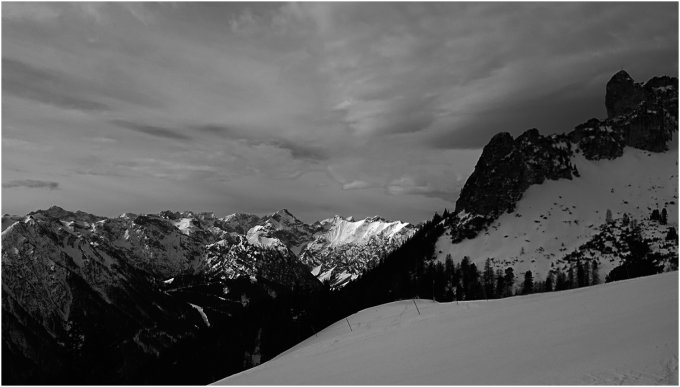 Heute versehentlich nur Schwarz/weiß Bilder, leider ein wenig zu früh dran, die Sonne kam erst später. Dafür war der Schnee ganz okay. Ansonsten schöner Tag, wenig los im Gebiet.