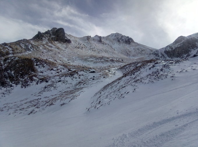 Wir sind trotzdem noch bis in den Sattel auf 2000m rauf. Es hat da noch ein paar Mulden die noch Schnee haben. Der oberste Teil wieder schön eingeschneit und toll zu Fahren.