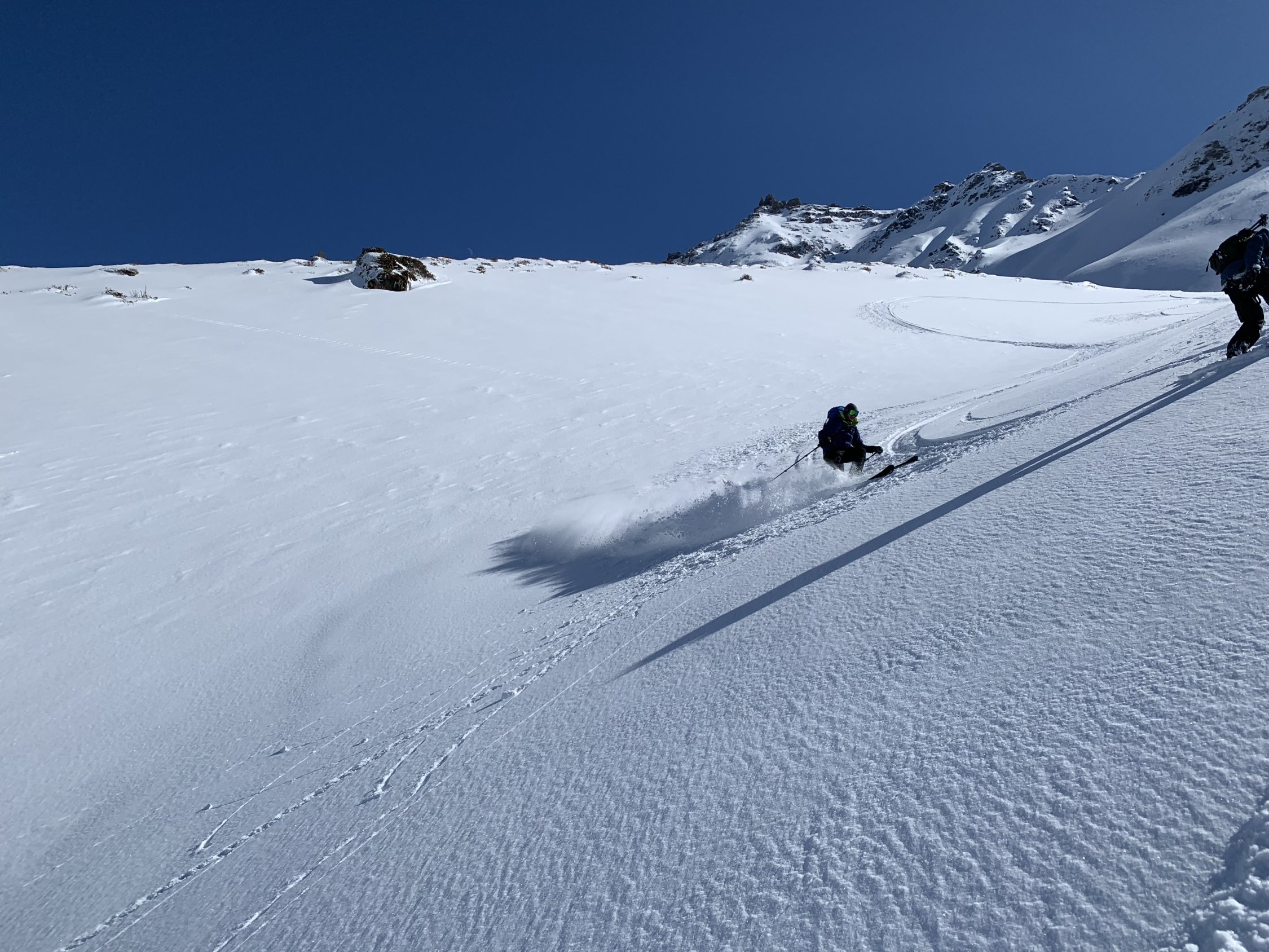 Erstaunlich gut. Aufstieg zum Gipfel ab Mattbahn mit wenig Schnee. Wir spurten den Gipfel neu via Südflanke. Bei diesen Verhältnissen gut zu machen. Der Grat ist abgeblasen und vereinzelt mit Tragepasagen. Abfahrt via Norden mit Steilrinne. Auf den Kuppen hart und abgeblasen. In den Rinnen Pulver bis zur Schwammhütte. Ab da immer weniger Schnee, aber gerade noch fahrbar bis Üeblital P.1085. Aktuell eine halbe Stunde Laufen bis zurück nach Engi.