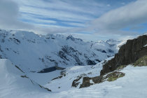 Aufstieg von der Staumauer direkt, gut machbar, Neuschnee gesetzt.