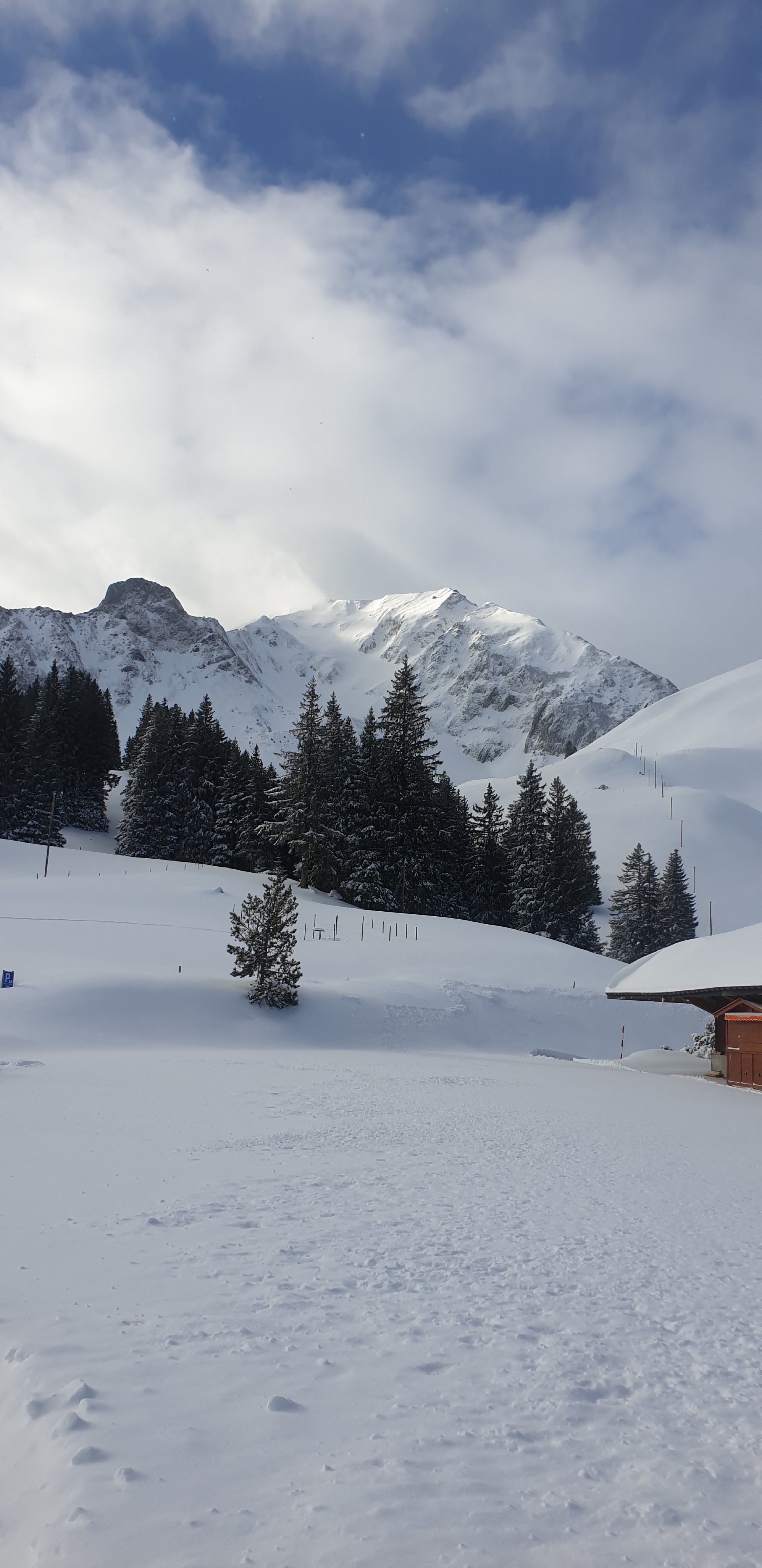 Start von der unteren Gantrischhütte bei -3 Grad und ca. 10-20 cm Neuschnee. Top Verhältnisse. Es wurde bereits durch ein Skifahrer bis zum Gipfel gespurt, merci.Ich habe den Skifahrer nicht mehr angetroffen. Einstieg in den Nordosthang gemäss Routenbeschrieb.