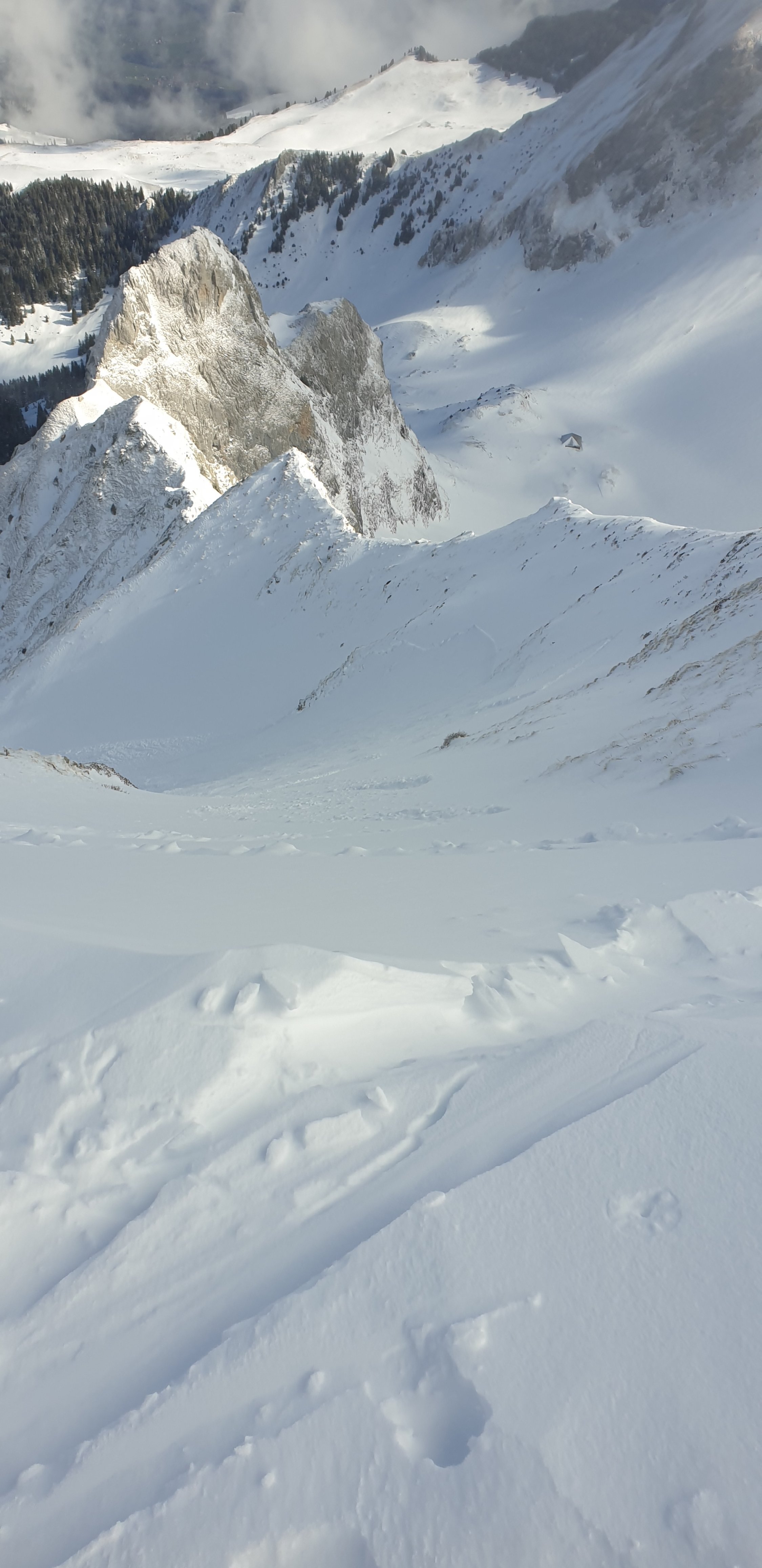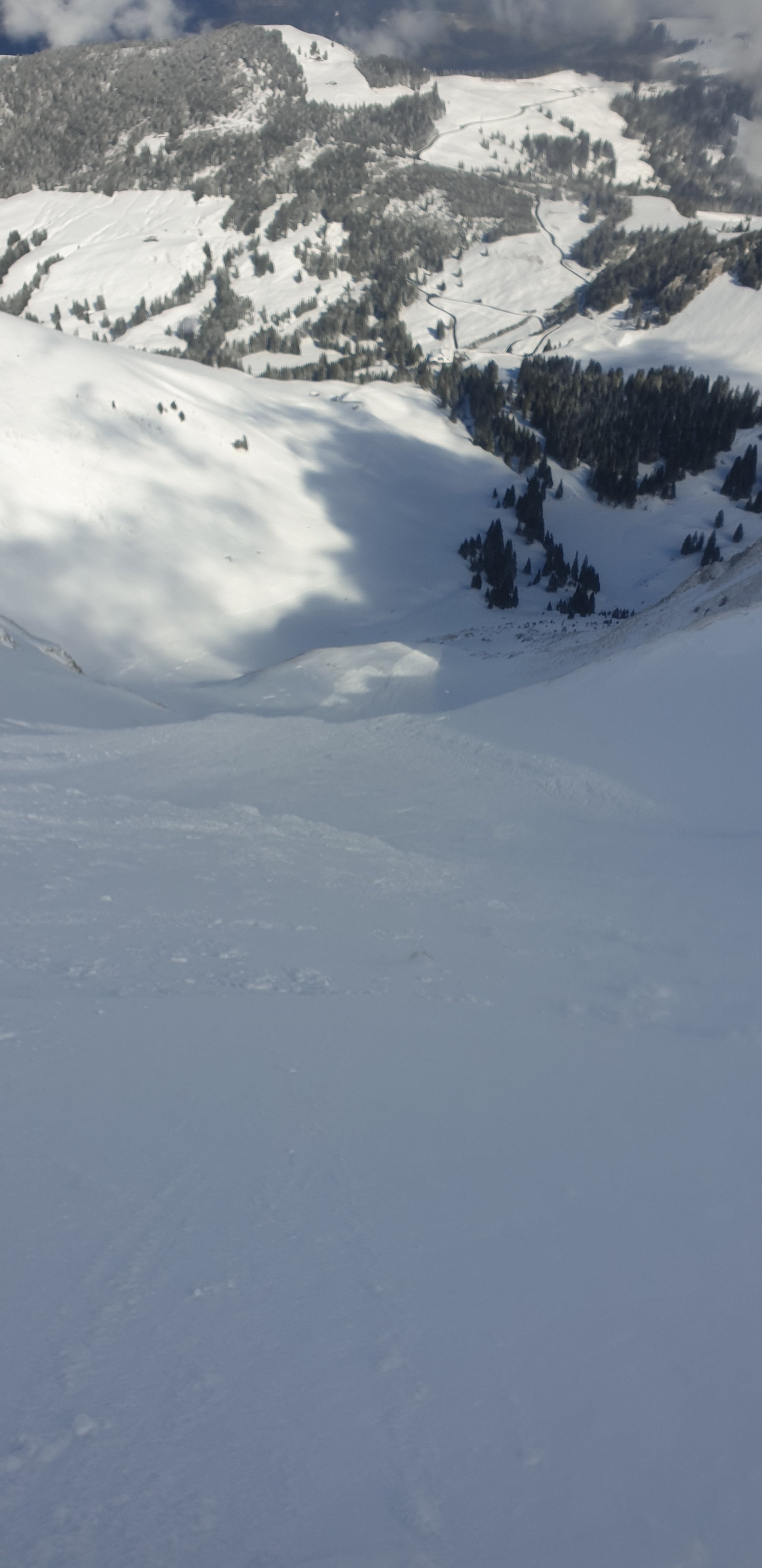 Zum Glück wurde die Person nicht verschüttet. Ich konnte den Abfahrtsspuren bis zur unteren Gantrischhütte folgen. Ansonsten super Pulver zu fahren.