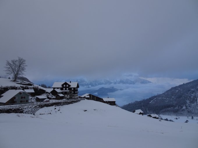 Endlich Winter! Pulverschnee auf guter Unterlage vom Start weg. Vor mir nur 5 Türeler, später noch 2; also war Spuren angesagt! Aber Dank tragender Unterlage eigentlich gute Verhältnisse vorgefunden. Nach der Alp Lunggenböden auf der Ebene dichter Nebel und Sichtweite von wenigen Metern. Aber dank einer zugeschneiten Spur den Gipfel noch gefunden…