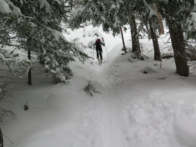 Danke dem Postauto Chauffeur für die spontane begleitung. bei der Abfahrt habe ich beim Restaurant nochmals die Felle hervorgeholt. Da die Bewölkung aufriss und ab und zu sich die Sonne zeigte. Es hat sich gelohnt. Ohne Nebel geht die Orientierung bedeutend besser.