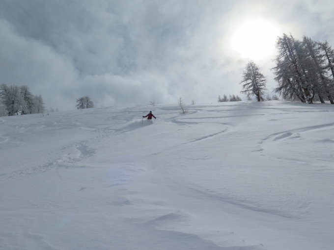 Man kann die skis ab pp mühlebach anschnallen. Es hat ca. 30cm schnee ohne grosse unterlage. Abfahrt geht im moment recht gut auf nassem pulver. In der höhe rasch besser. Im Wald wenige stellen wo man ein wenig schauen muss. Ende Wald vor Chäserstatt viel Schnee. An manchen Stellen hats wohl mehr al 30 cm gegeben. Leider ist er relativ schwer und hat einen leichten winddeckel der den Abfahrts genus etwas einschränkt. Deswegen nur gut. Oben etwas abgeblasen.