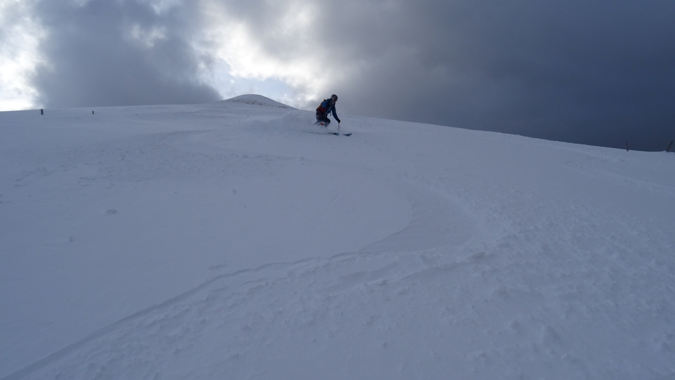 Überraschend gute Verhältnisse nach dem Regen zuerst bis 2000m dann orkanartigen Winden und schlussendlich noch kurz wieder Pulverschnee heute morgen bis 1000m hinunter