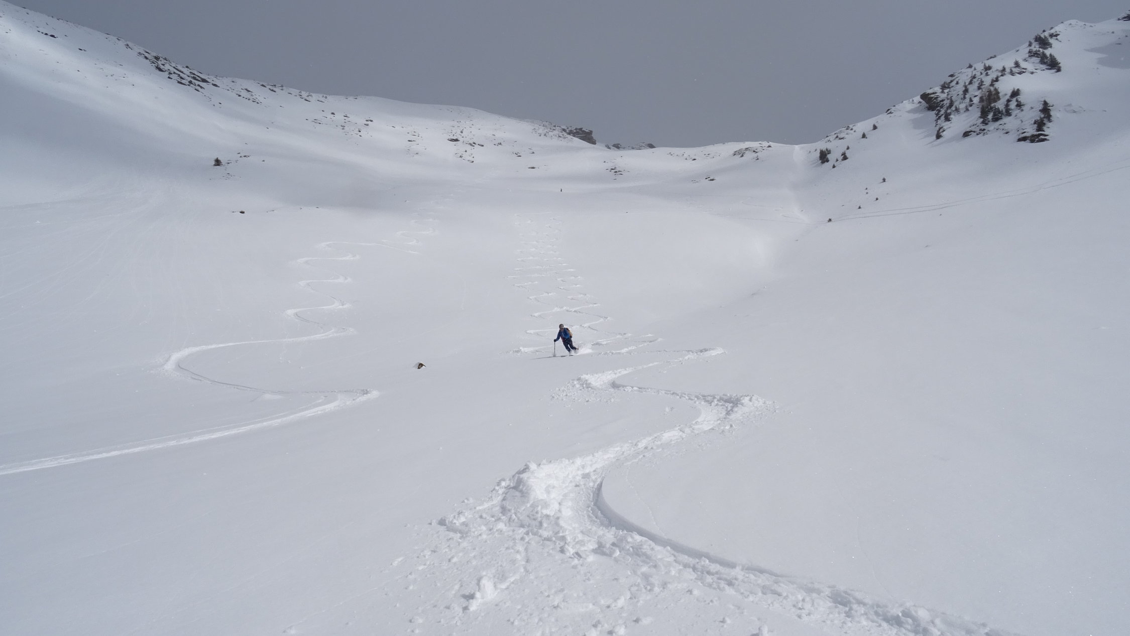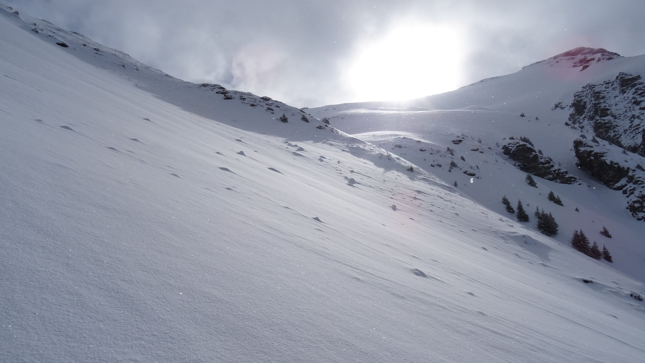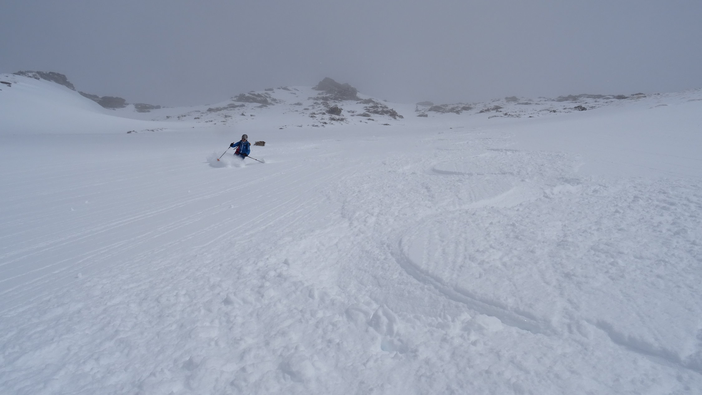 Es war heute mit dem Nebel immer ein bisschen ein abpassen dass man bei einem kurzen sonnenloch abfahren konnte und dazwischen hat es immer wieder leicht geschneit