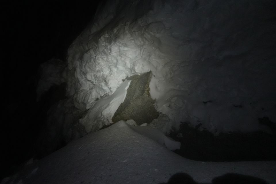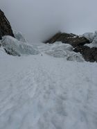 Einstieg Bergschrund: nicht mehr viel zum Stehen, aber noch machbar (überhängend). Man muss beherzt ziehen ....