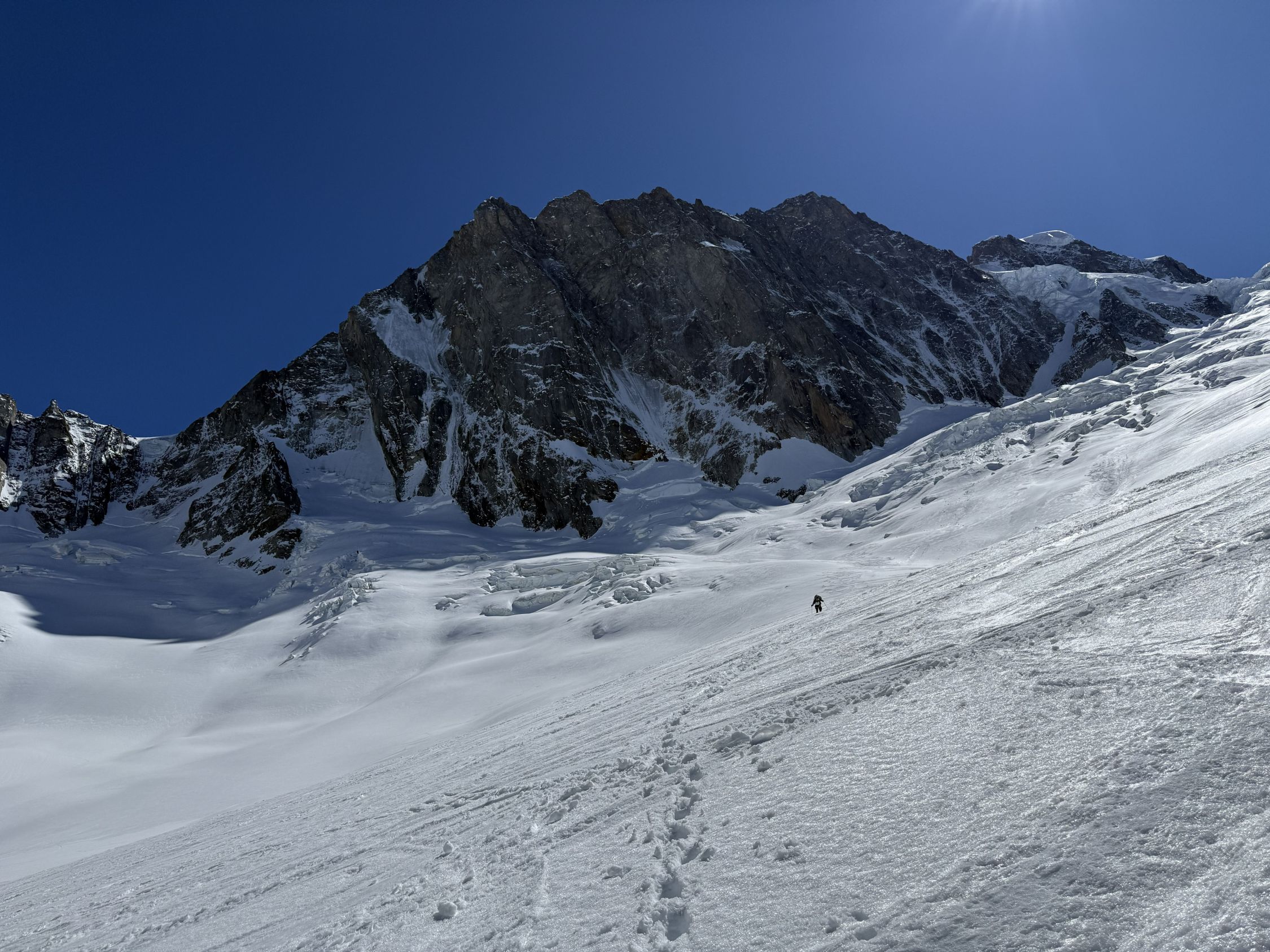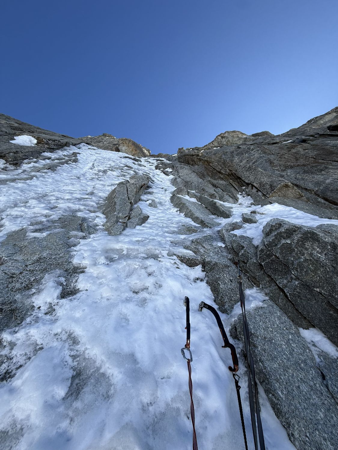 Die letzte reine Eistour lag ca. zwei Monate zurück. Ohne jegliches Training den Crozpfeiler geschafft. Geniale Linie. In dem Zustand gut gewürzt! Nahezu alles im Vorstieg (Ausnahme: 25 m links hoch zum Originalausstieg).