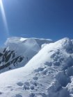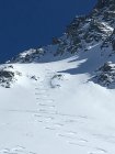 Start Muottas Muragl 8.00, minus 10 Grad, windstill (Erste Bahn 7.45 Punt Muragl, CHF 25.00). Über Tschimas da Muottas zur Fuorcla Val Champagna 2806 m. Dann spurte ich den steilen Westhang hinauf, fast zuoberst überholte mich ein schneller Tourengänger. Nun bis Sattel und noch den Hang hoch beim Nordostgrat und unterhalb den ersten Felsen Skidepot auf ca, 3150 m. Nun zu Fuss dem Grat entlang und zuoberst ausgesetzt zum breiten Gipfel. Bin ohne Steigeisen und Pickel auf dem Grat aufgestiegen, guter Trittschnee. Kein Eis. Abfahrt zuerst wie Aufstieg den schönen Westhang hinunter. Bin ganz links in Abfahrtsrichtung gefahren, hier etwas steiler aber keine Spuren, perfekter Pulverschnee, etwa 50 cm Neuschnee. Nun das breite Val Muragl hinunter, im oberen Teil noch viel Platz für eigene Spuren, ab Alp verfahren und der Schnee nicht mehr so schön pulvrig.