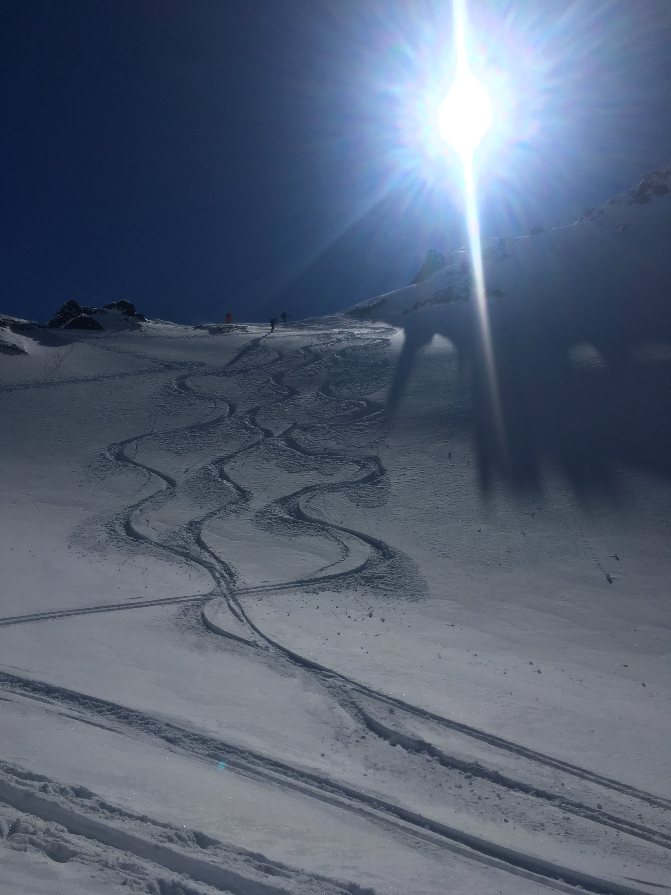 Tolle Skitour mit genialer Abfahrt, vor allem der steile Westhang im oberen Teil. Perfekte Verhältnisse, streng zu spuren! Man kann auch noch den Piz da las Sterlas mitnehmen.