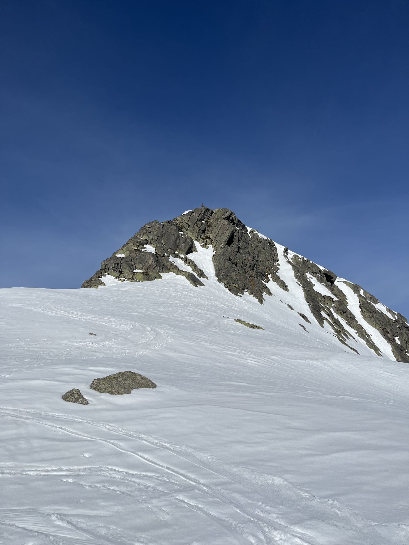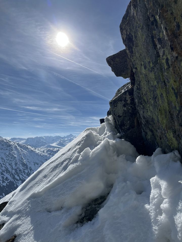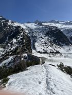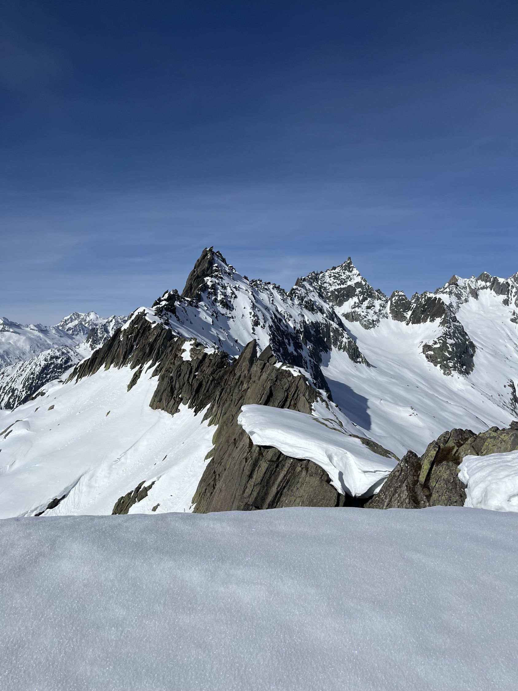 Grimselpassstrasse ist bis Rätrichsbodensse offen. Der Parkplatz war voll mit Autos. Es haben schon Autos weiter unten parkiert. Bin um 7.15 Uhr gestartet. Die meisten (über 20 Personen) waren Richtung Alplistock unterwegs. Andere gingen Richtung Gärstenlücke. Ich war alleine Richtung Juchlistock unterwegs. Als ich abgefahren bin, kamen noch zwei Türeler. Der Schnee war gut durchgefroren und deshalb sehr angenehm zum Aufsteigen. Die Aufstiegspur wäre gut angelegt. Leider ist jemand über die Aufstiegspur abgerutscht. Vermutlich war gestern Nebel und die Person konnte sich so besser orientieren. Im oberen Teil waren Harscheisen hilfreich. Das Gipfel Couloir ist gut eingeschneit mit Trittspuren. Steigeisen und Pickel sind hilfreich. Auch der Fels zum Klettern war angenehm trocken. Traumhaft schöner Ausblick auf dem Gipfel. Es war windstill und angenehm warm. So gab es einen ausgiebigen Gipfelrast. Abfahren um 10.00 Uhr war perfekt. Eine halbe Stunde später könnte auch noch gehen. Das untere Couloir mit dem Bach, hat noch sehr viel Schnee. War wunderschön zum fahren. Der Lawinenkegel unten, kann rechts umfahren werden. Es war ein traumhaft schönes Türli. Zum Mittagessen wieder in Spiez.