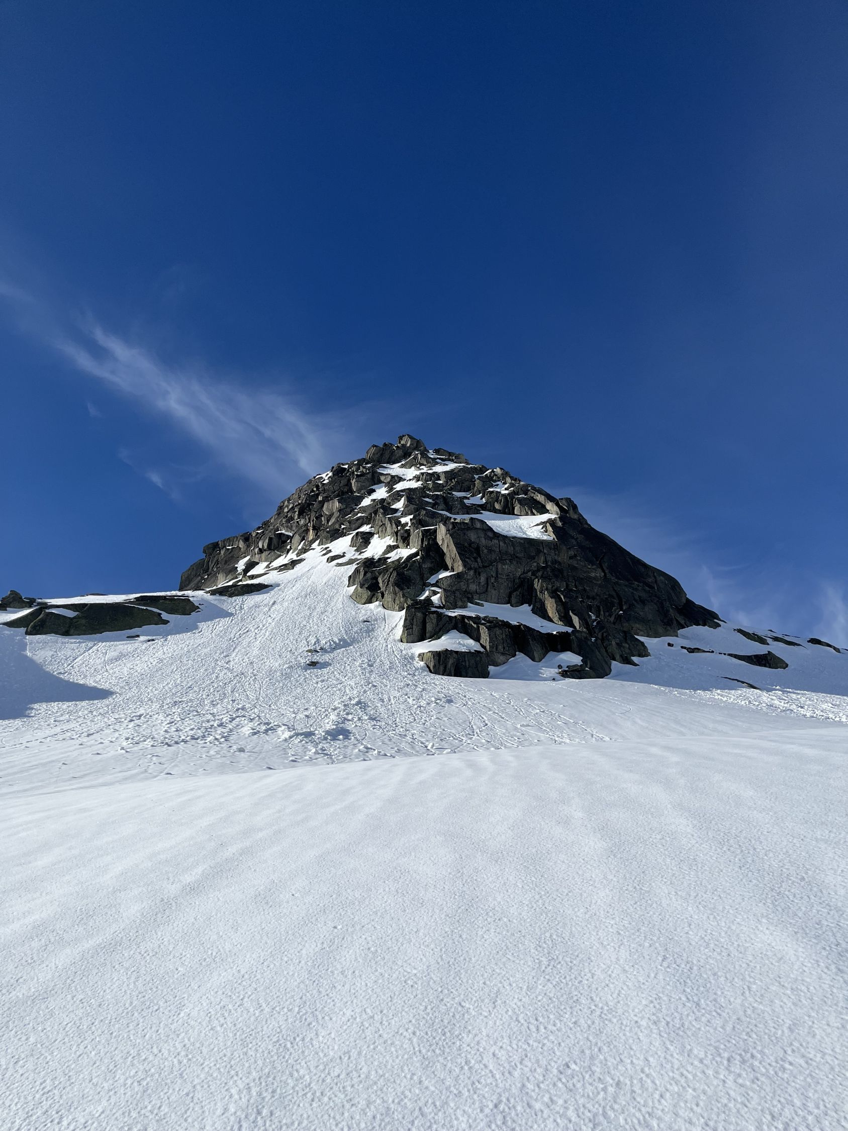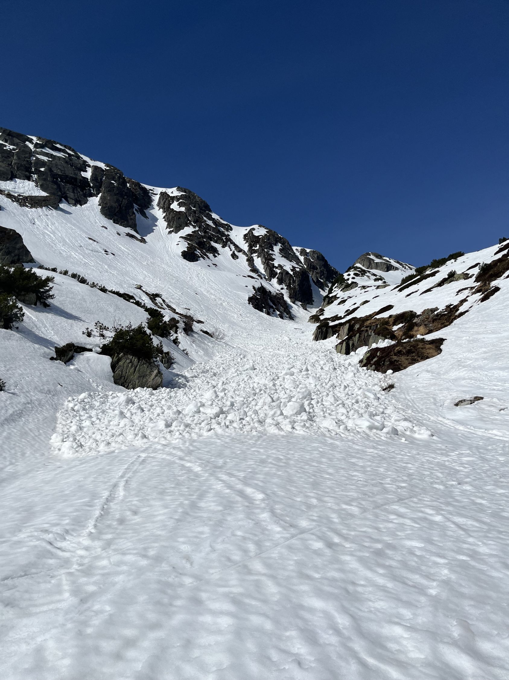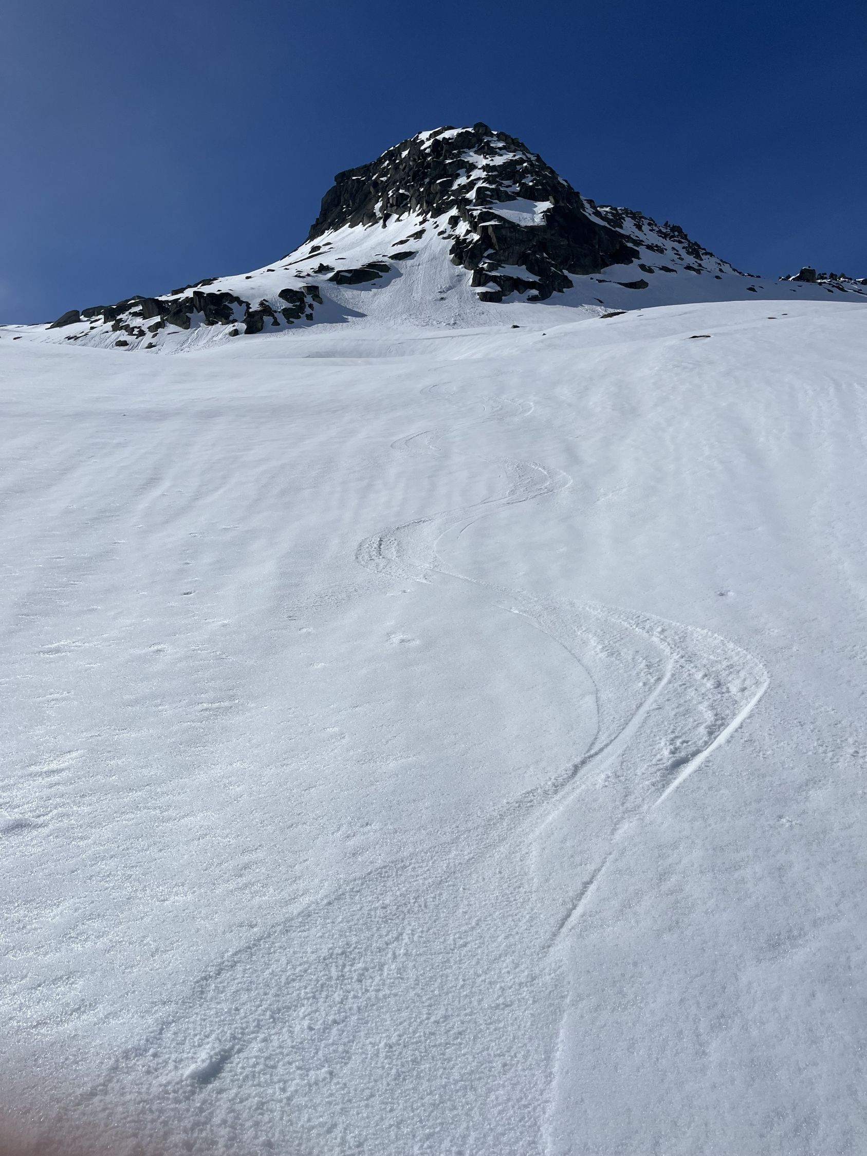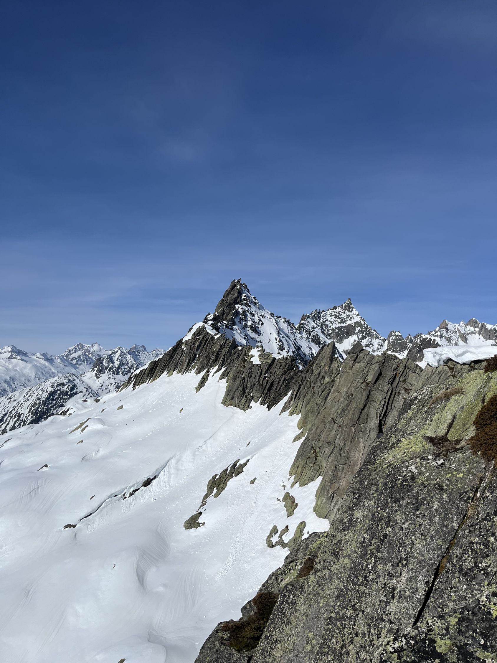 Grimselpassstrasse ist bis Rätrichsbodensse offen. Der Parkplatz war voll mit Autos. Es haben schon Autos weiter unten parkiert. Bin um 7.15 Uhr gestartet. Die meisten (über 20 Personen) waren Richtung Alplistock unterwegs. Andere gingen Richtung Gärstenlücke. Ich war alleine Richtung Juchlistock unterwegs. Als ich abgefahren bin, kamen noch zwei Türeler. Der Schnee war gut durchgefroren und deshalb sehr angenehm zum Aufsteigen. Die Aufstiegspur wäre gut angelegt. Leider ist jemand über die Aufstiegspur abgerutscht. Vermutlich war gestern Nebel und die Person konnte sich so besser orientieren. Im oberen Teil waren Harscheisen hilfreich. Das Gipfel Couloir ist gut eingeschneit mit Trittspuren. Steigeisen und Pickel sind hilfreich. Auch der Fels zum Klettern war angenehm trocken. Traumhaft schöner Ausblick auf dem Gipfel. Es war windstill und angenehm warm. So gab es einen ausgiebigen Gipfelrast. Abfahren um 10.00 Uhr war perfekt. Eine halbe Stunde später könnte auch noch gehen. Das untere Couloir mit dem Bach, hat noch sehr viel Schnee. War wunderschön zum fahren. Der Lawinenkegel unten, kann rechts umfahren werden. Es war ein traumhaft schönes Türli. Zum Mittagessen wieder in Spiez.