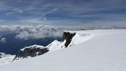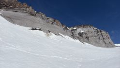 Von hier aus ist es gerade noch möglich, alles mit angeschnallten Skiern bis auf den Gipfel (11.45) zu steigen.