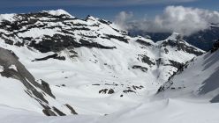 Ca. 10 min. mit den Skiern der Strasse folgend und danach diese tragend bis Höhe 1900 (alter Alpweg) bilden das etwas unangenehme kurze Zwischenstück.