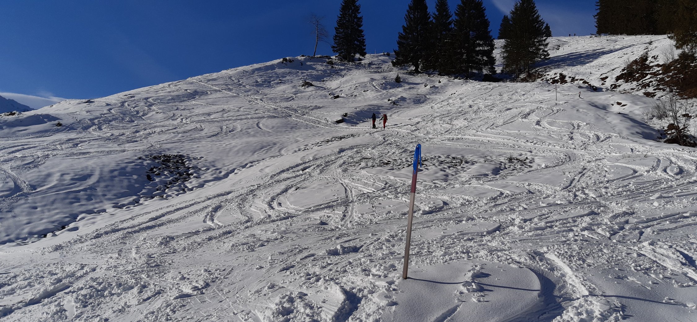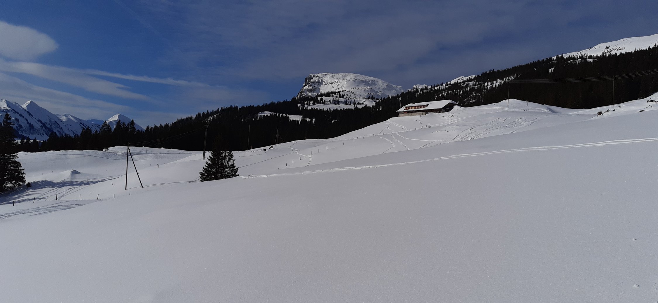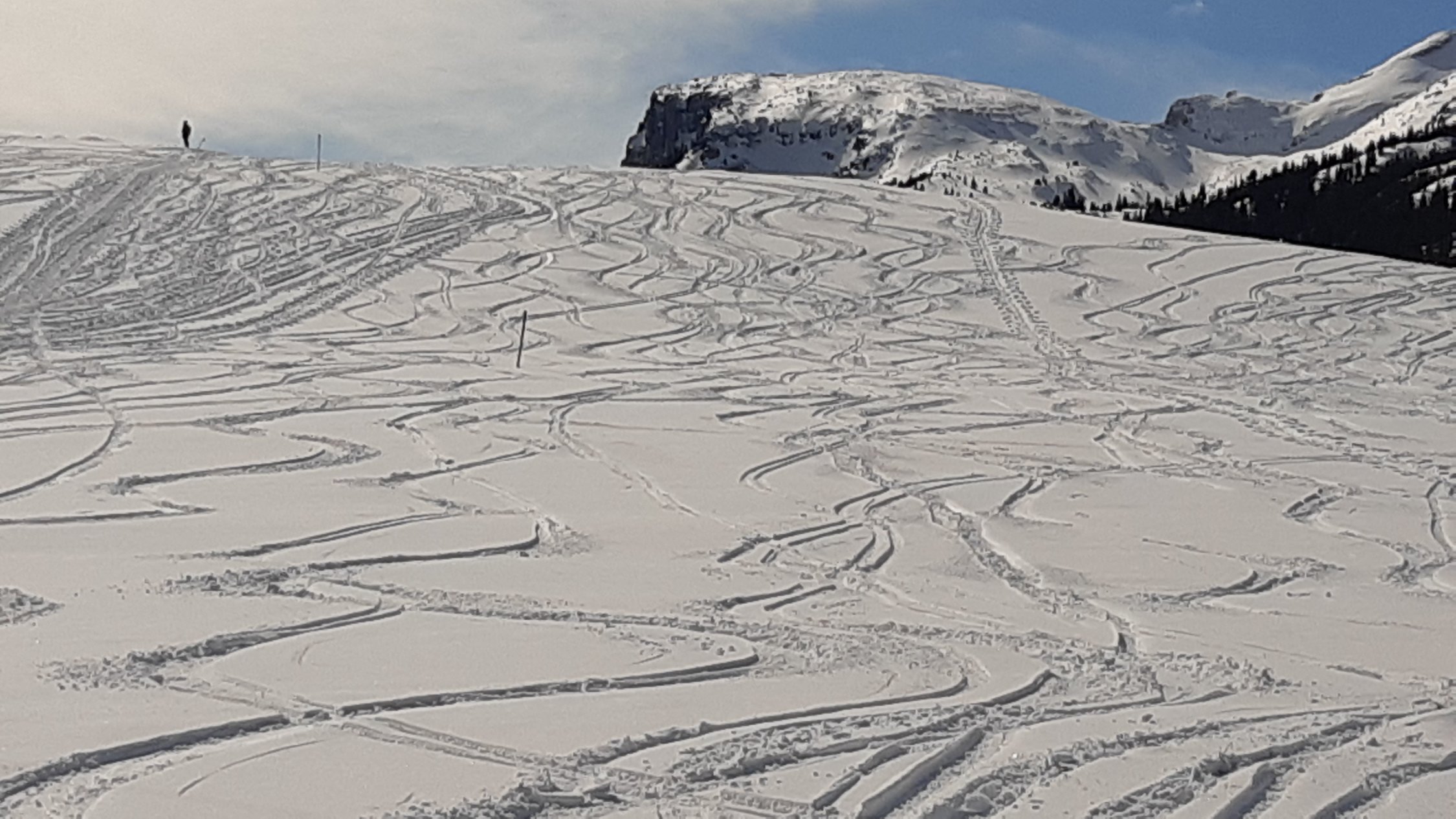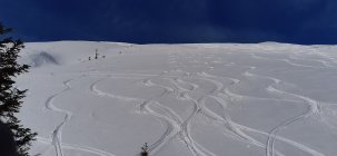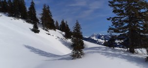 Zuunterst der Stächelegg grad genügend Schnee, ab Stächeleggstall dann gut eingeschneit. Die Waldschneise oberhalb Schlund hat viel Schnee, auch der übrige Teil der Schrattenflue ist gut eingeschneit. Gipfelhang mehr als Top.