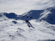 Die Gipfelflanke wie heute ist kaum zu überbieten. 30-40cm leicht gesetzter, samtiger Pulverschnee, den man ohne Vorbehalte im vollen Tempo stieben lassen konnte, weil er hier windgeschützt liegen geblieben war. Bisher der schönste Pulverschnee der Saison.