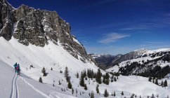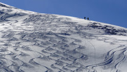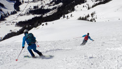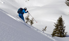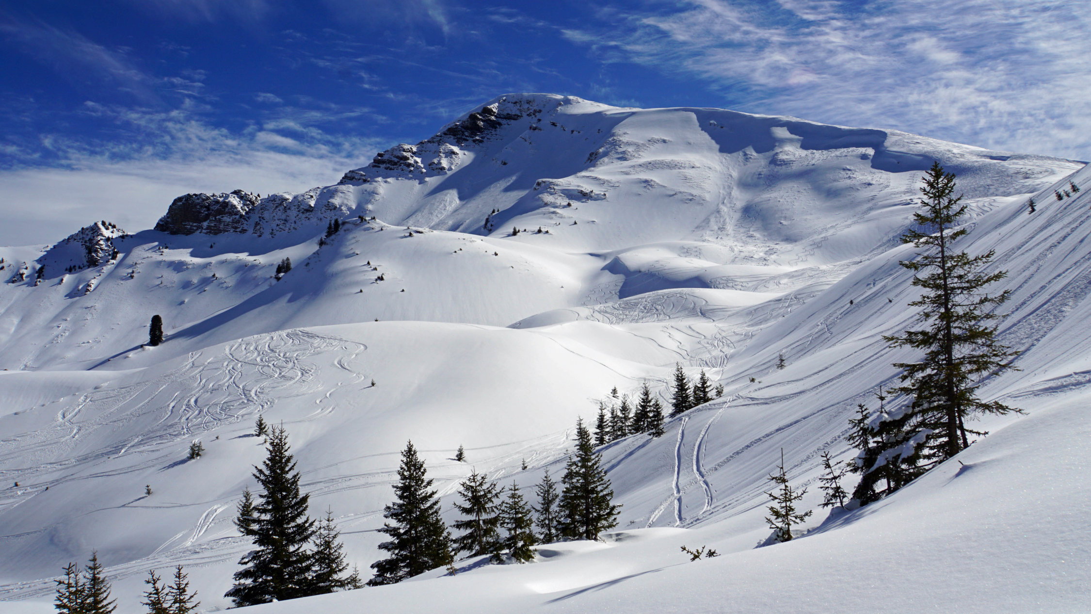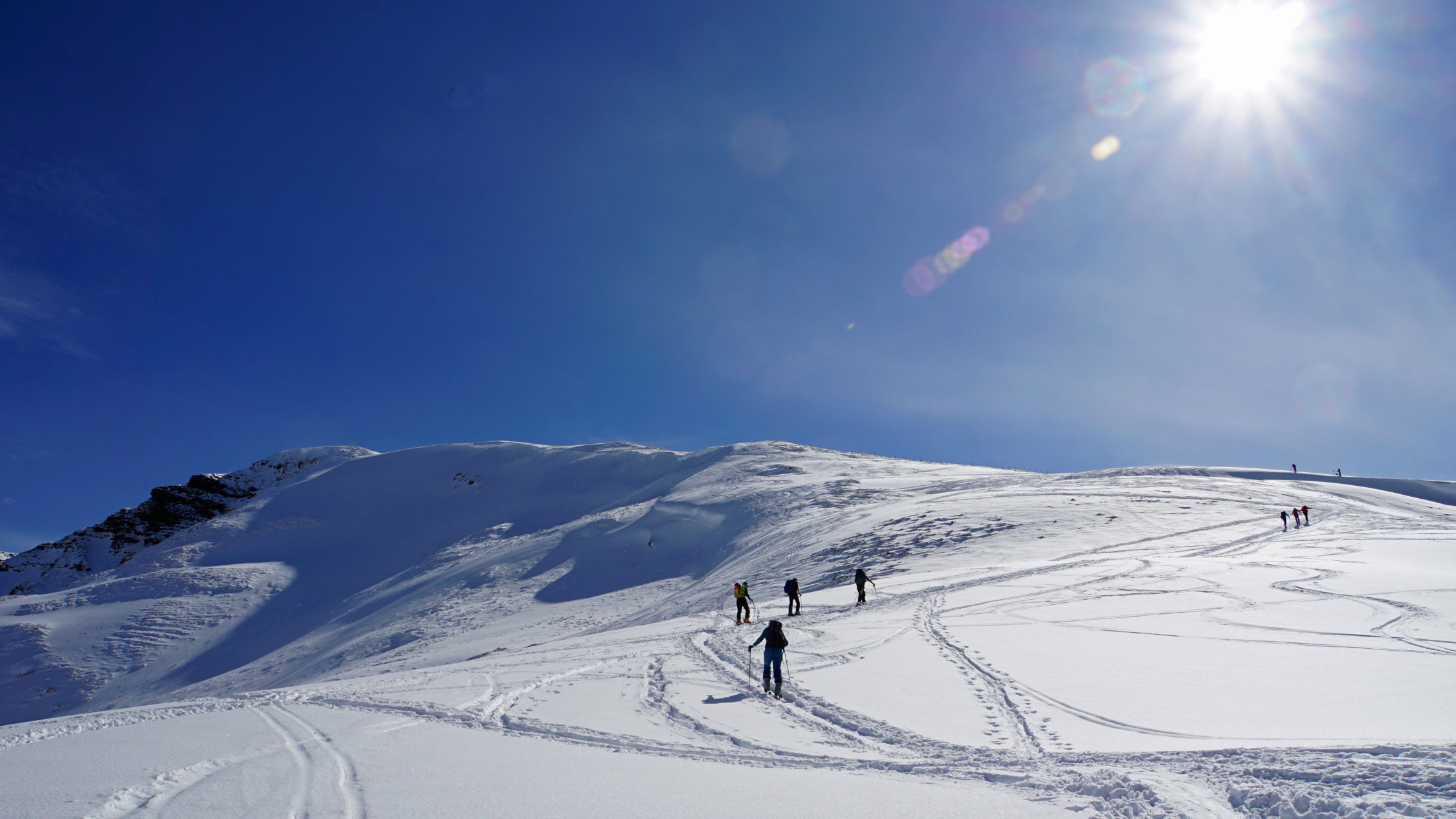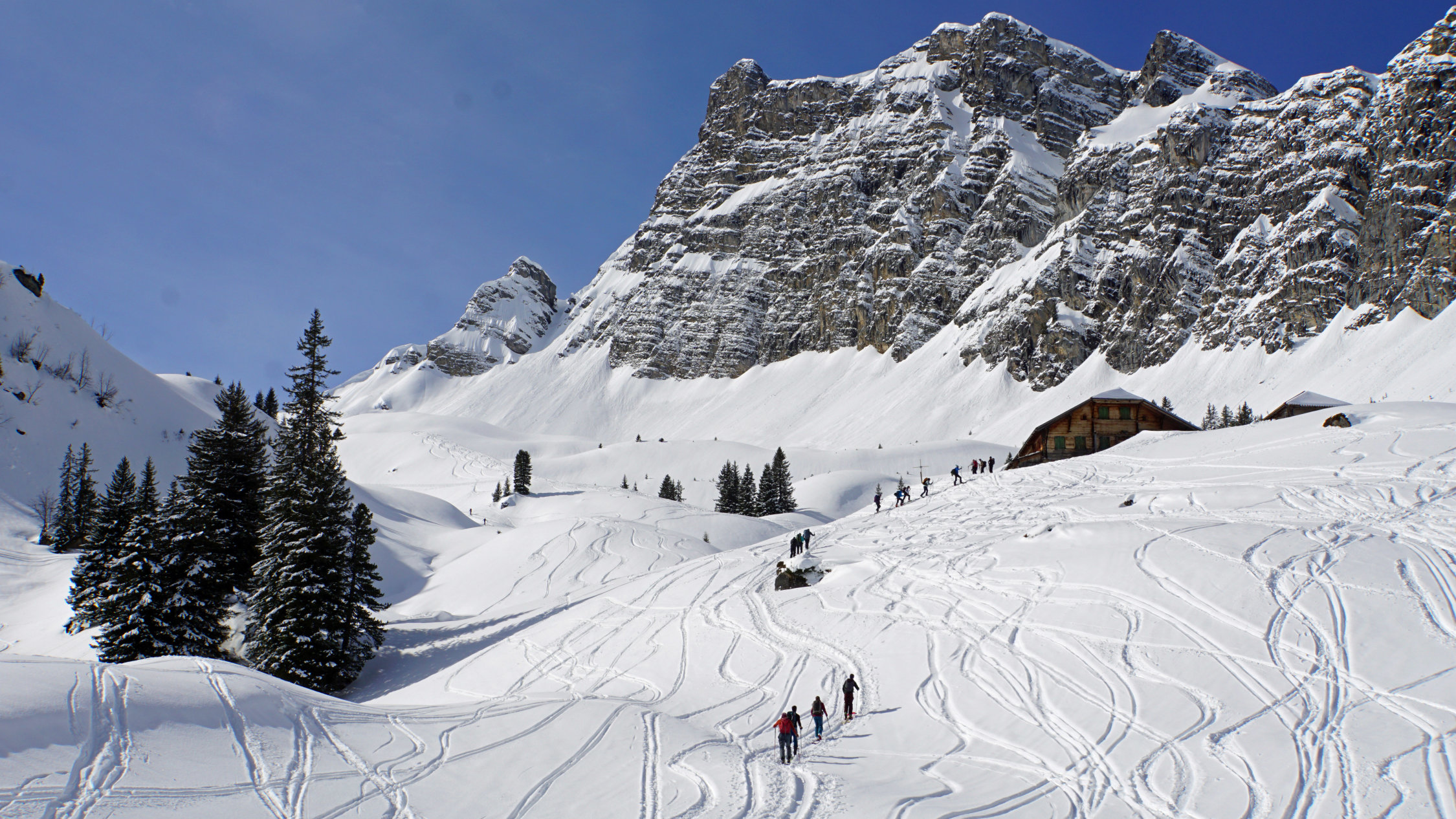 Zum glück hat es geschneit und oberhalb von Zirka 1500m konnte man feststellen, dass die Schneedecke beachtlich ist. Trotz vielen Tourengänger gab es noch Platz für neue Abfahrtspuren im besten Pulver!