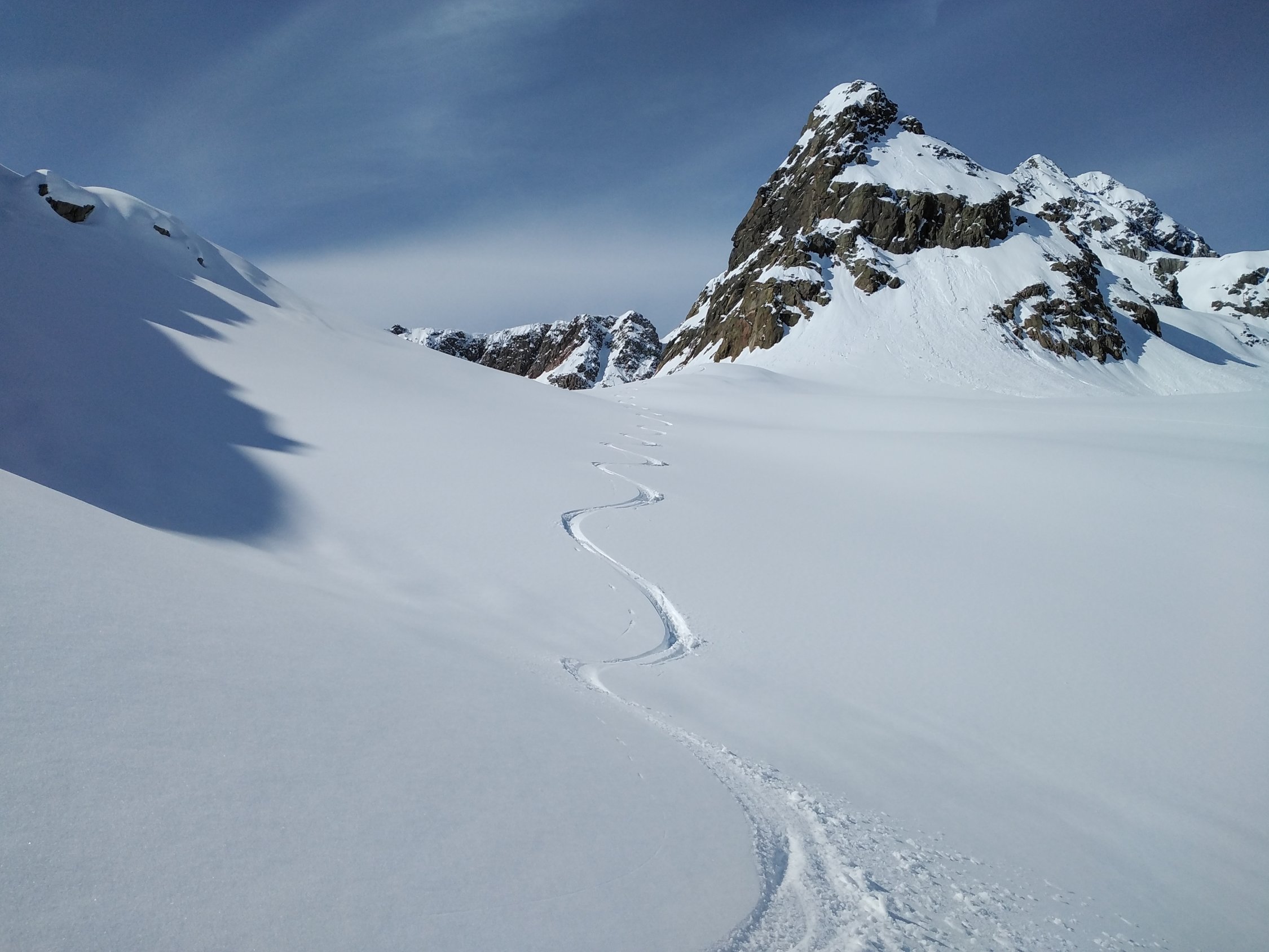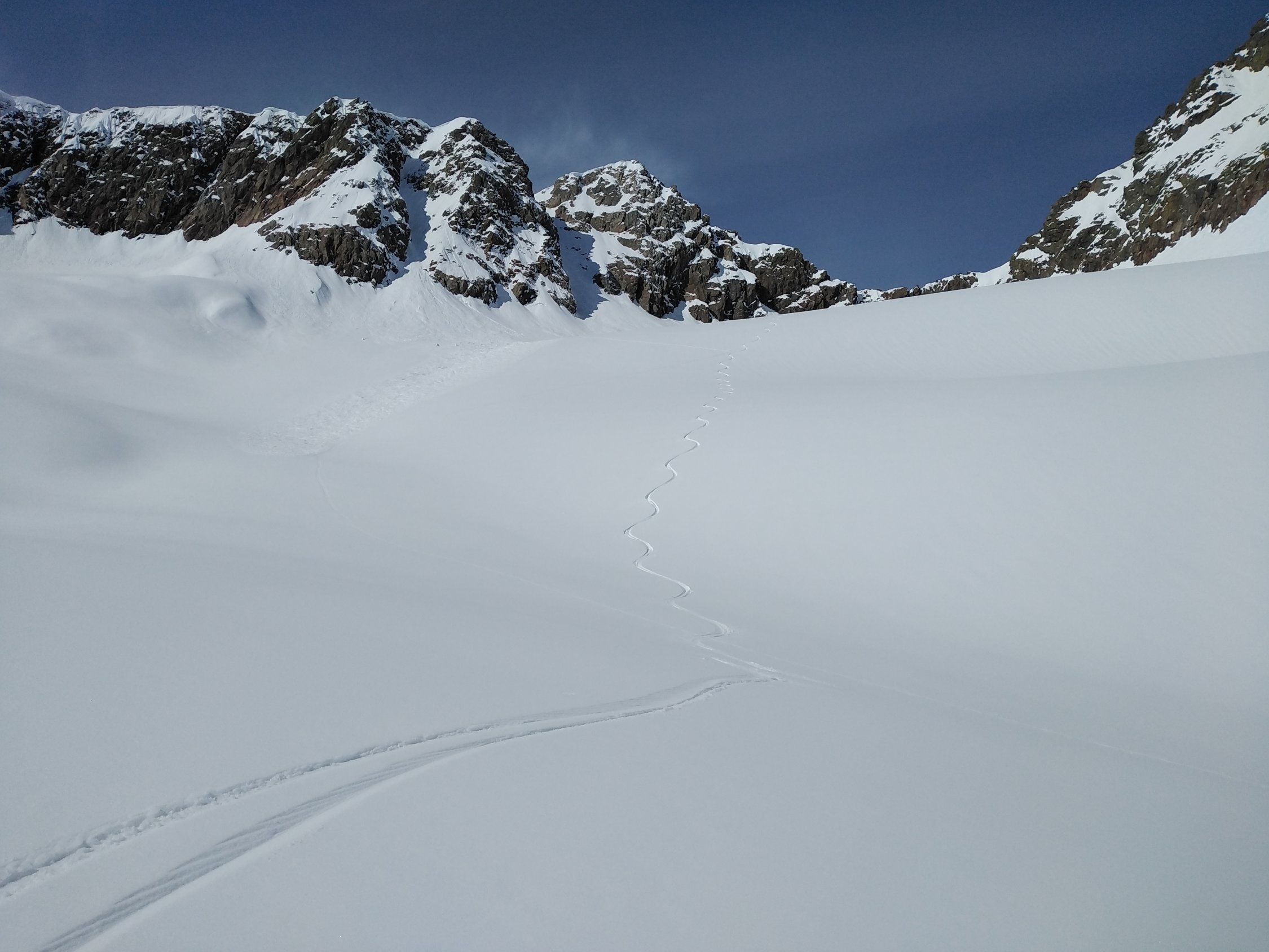 Von da hat es genügend Schnee der bis auf 3000m Nass war und dementsprechend das Spuren schwer.