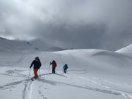 Wir stiegen am 13:00 hoch zum Gipfel, sind dann aber wieder bei 2700m umgekehrt. Der Gipfel ganze Zeit im Nebel. Abfahrt im übelsten Bruchharst in dieser Saison.