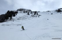 Abfahrt zuerst mässige Sicht, diffus. Dann bald besser. Schönes Schäumchen auf der harten Unterlage. Wir sind noch zum Skilift hochgestiegen. Darunter schöne Schwünge bis zum Restaurant zurück.