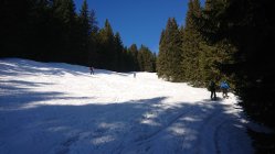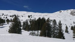 Abfahrt über Silwängen, links haltend. Sehr schöne Variante. Herrlicher Sulzschnee, ein ganzes Stück mit "Schümli" - habe ich heute nicht erwartet.