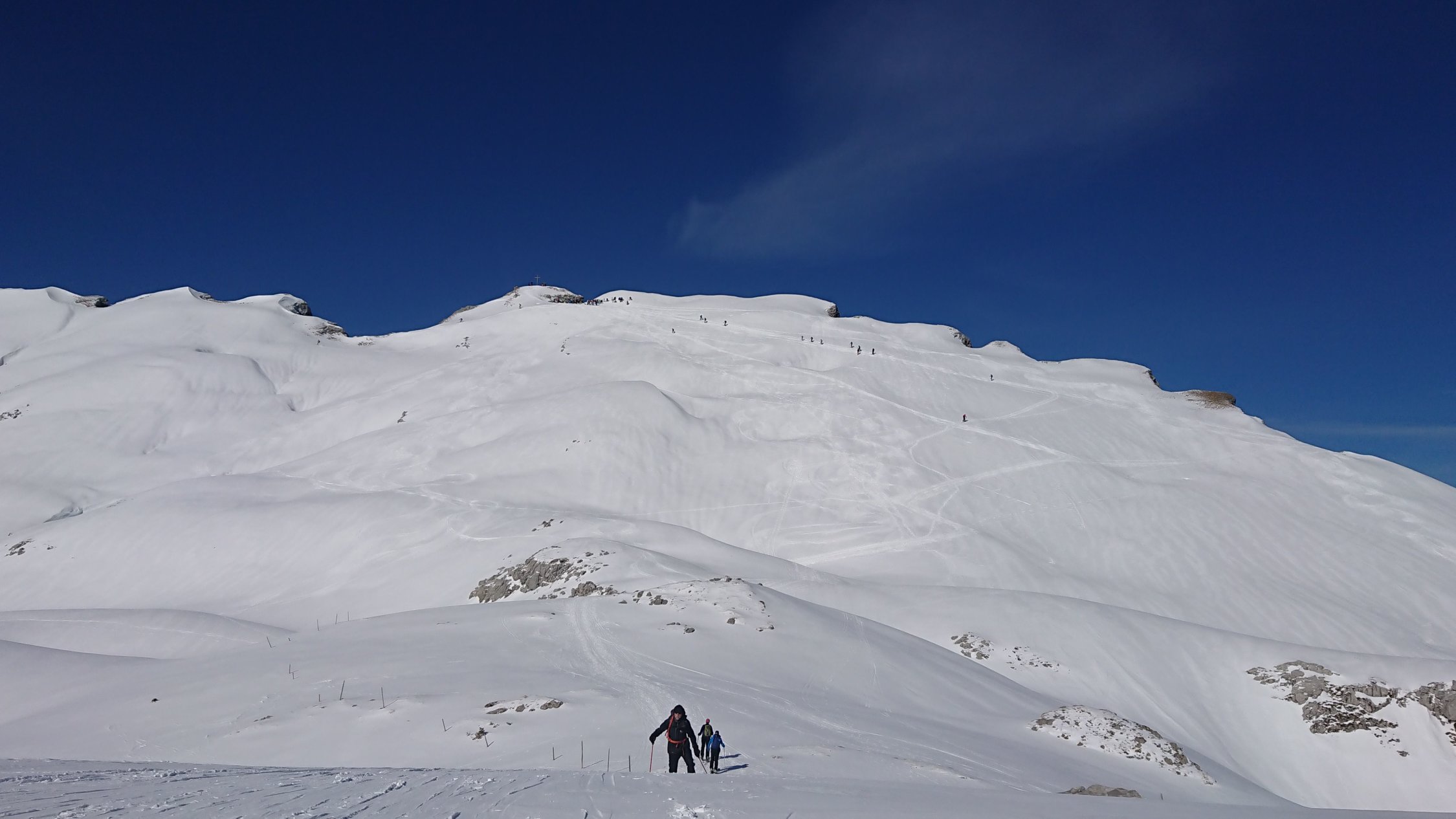 Ein sehr schöner Skitourentag bei besten Verhältnissen, wenig Wind viel Sonne. Wir sind etwas unterhalb Schlund gestartet. Es hat noch genug Schnee. Gute griffige gut angelegte Aufstiegspur zum Gipfel. (Heute für einmal richtig auf dem Gipfel.
