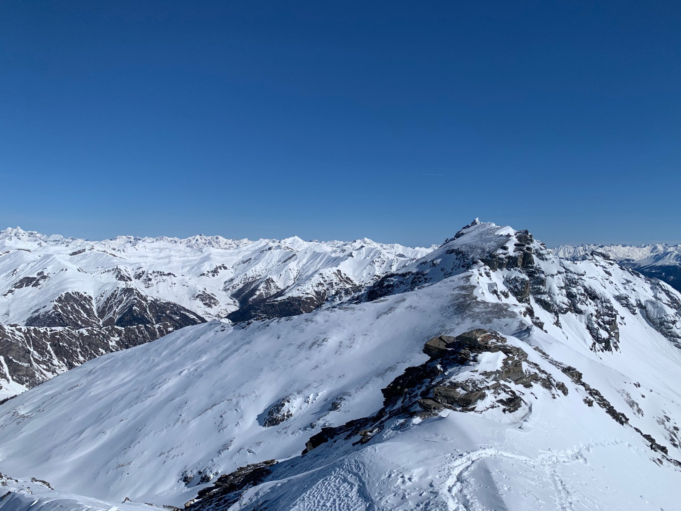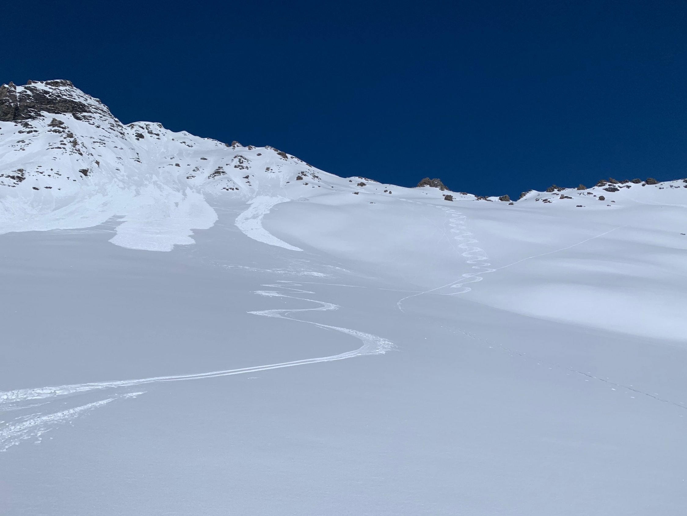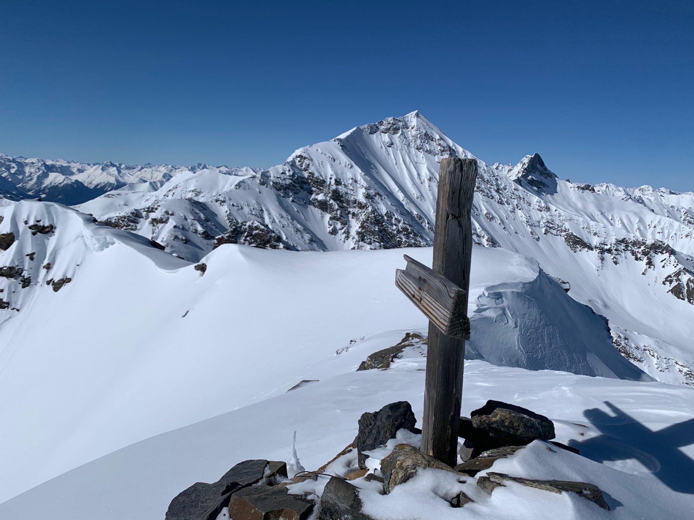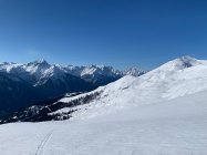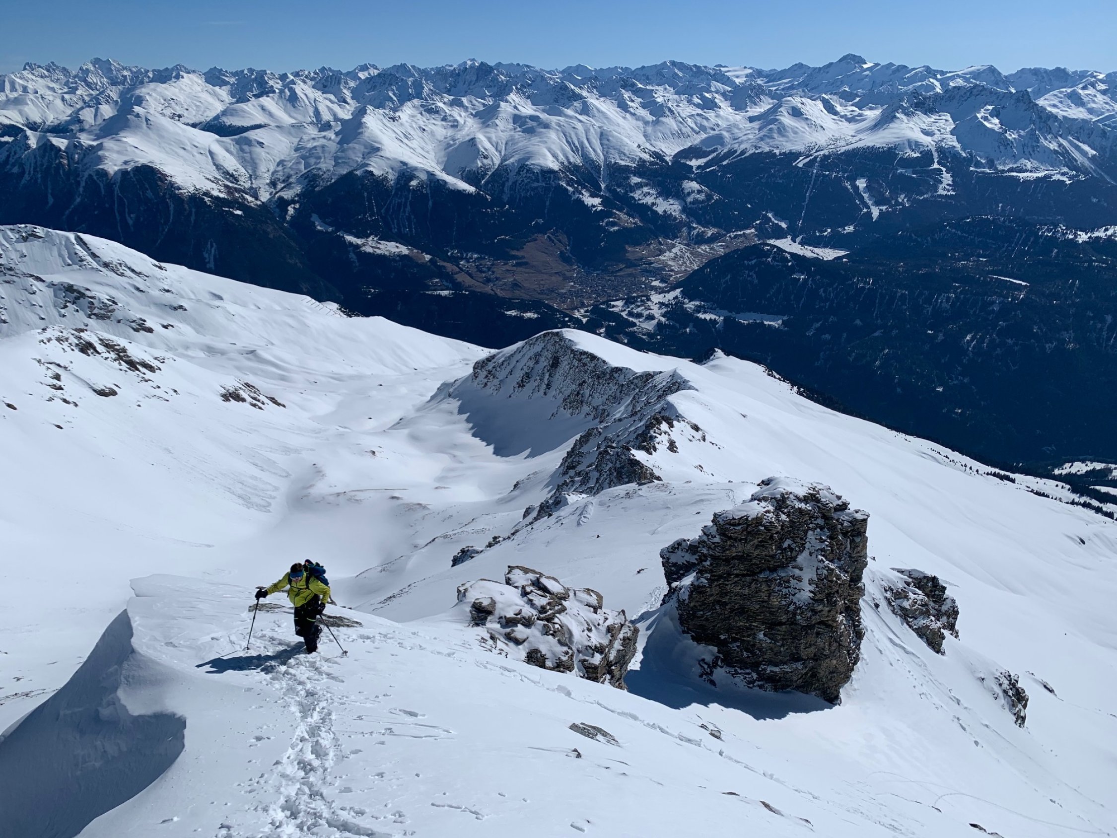 Top Verhältnisse, gerade noch genügend Schnee ab Tschlin. Ganze Tour feste Unterlage, darüber 1 bis 5 cm Neuschnee. In der Abfahrt oben noch pulvrig, unten dann Sulz. Harscheisen empfehlenswert.