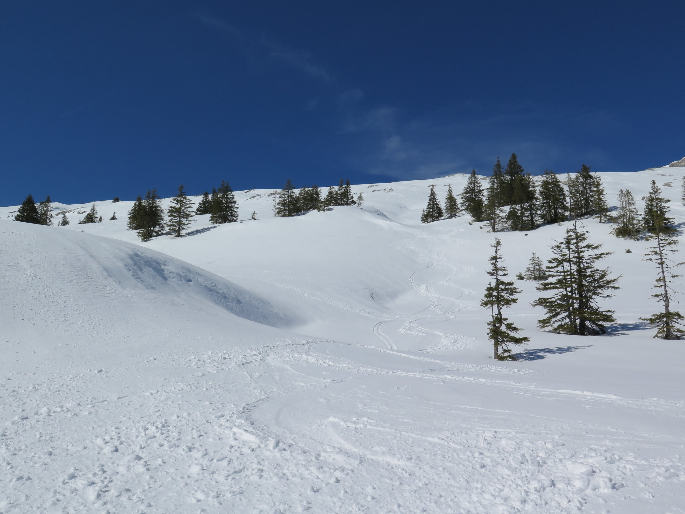 Sind über Alp Silwängen abgefahren. Paar Meter vorher Bremsschnee. Weiter der Strasse nach zur Alpschlund.