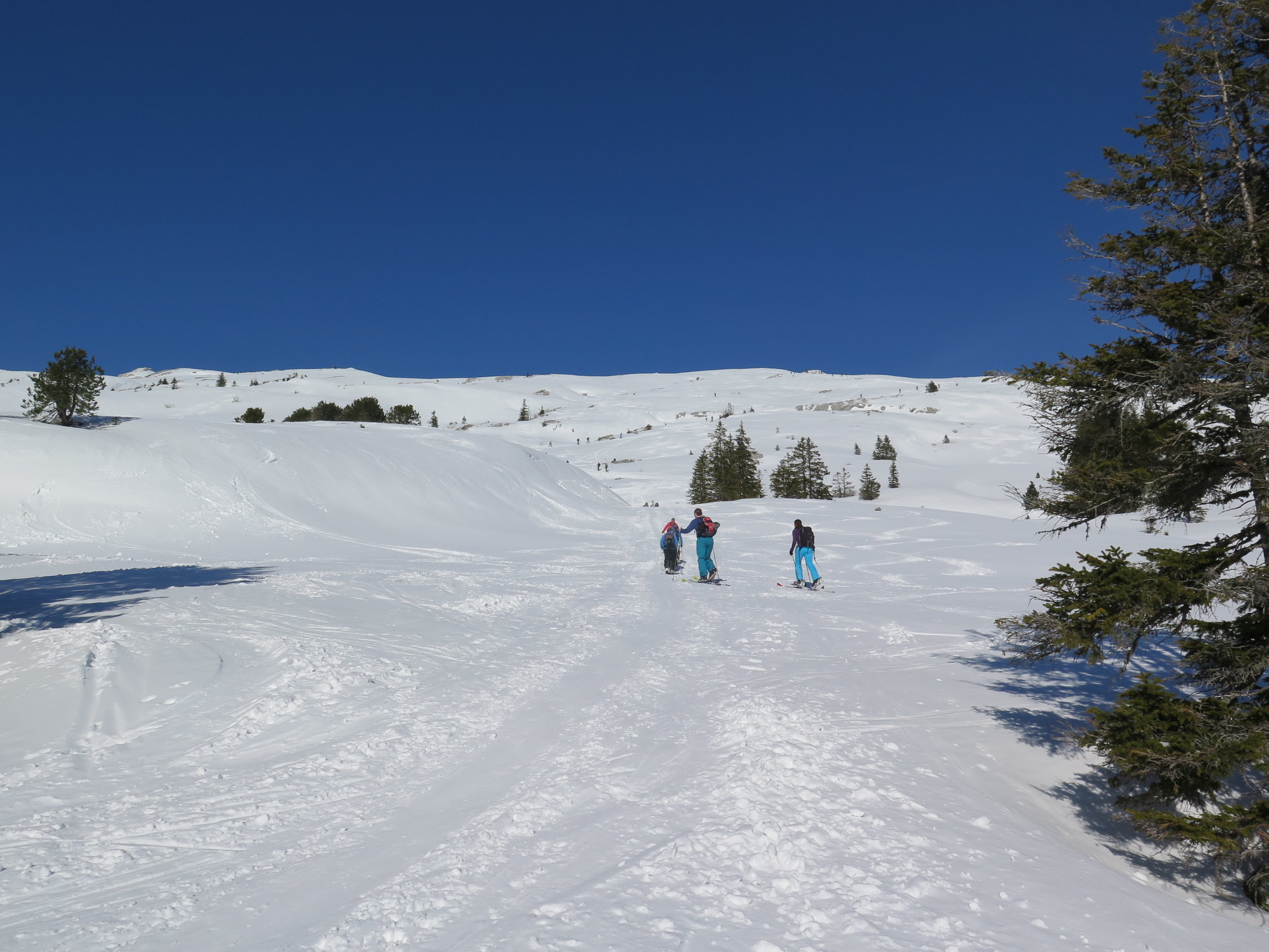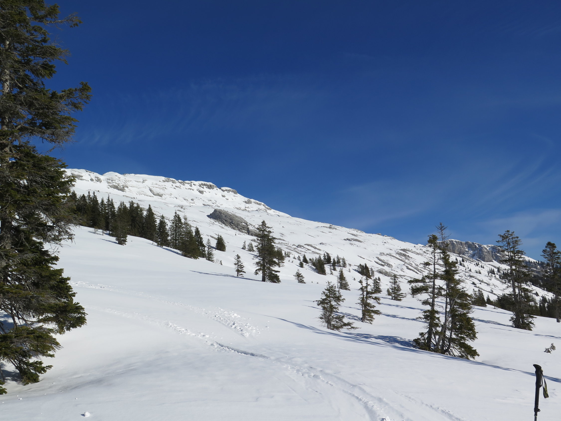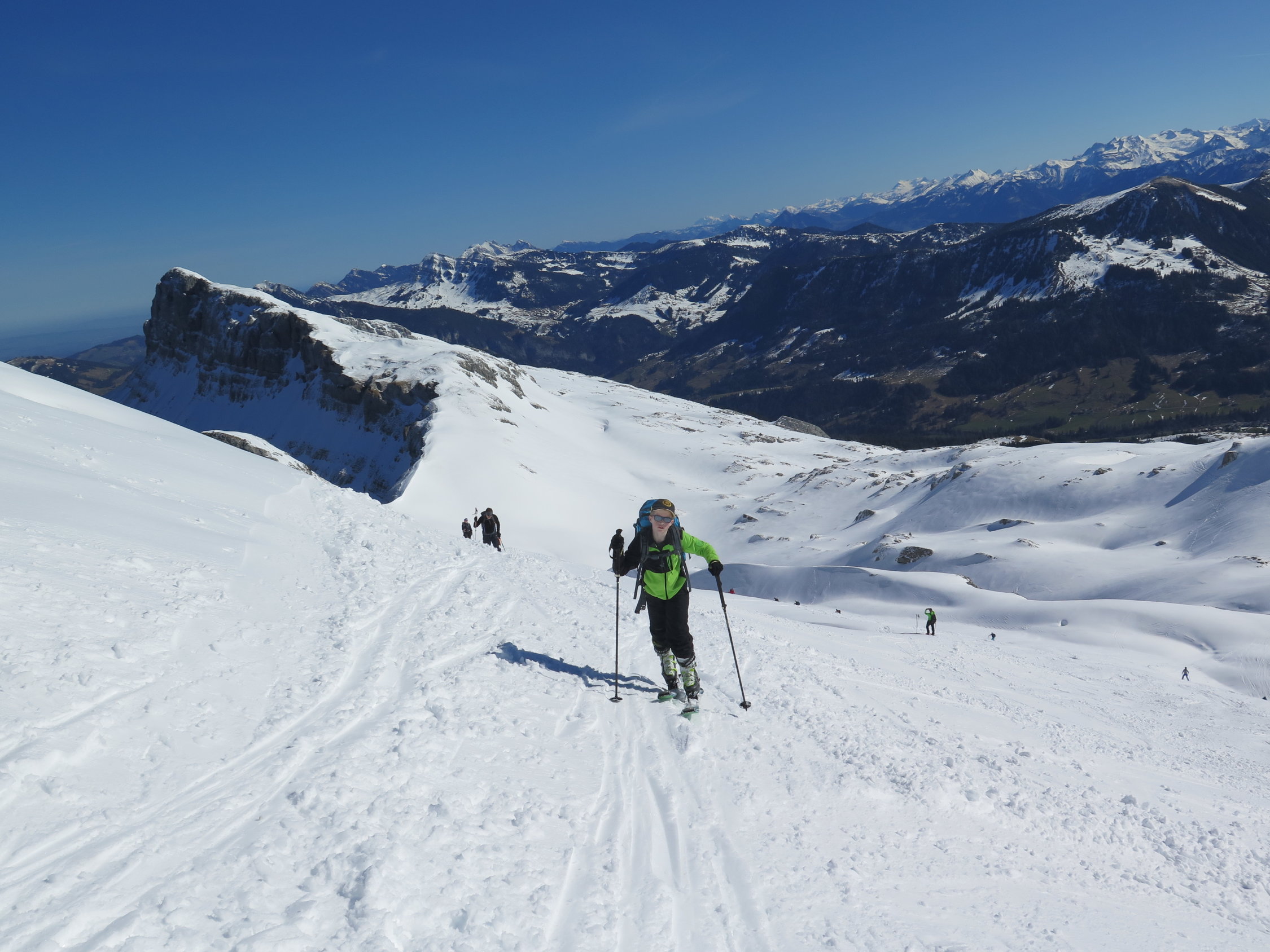 Wenns nicht zu warm wird, kann man noch einige zeit die Schrattenflue mit Skis besteigen.