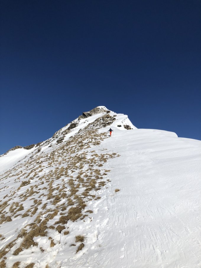 Ab Parkplatz heute noch Schnee. Wird aber knapp. Aufstieg ohne Probleme. Abfahrt um 1200 Uhr heute genau richtig. Oben noch etwas Pulver auf harte Unterlage, danach Sulz.