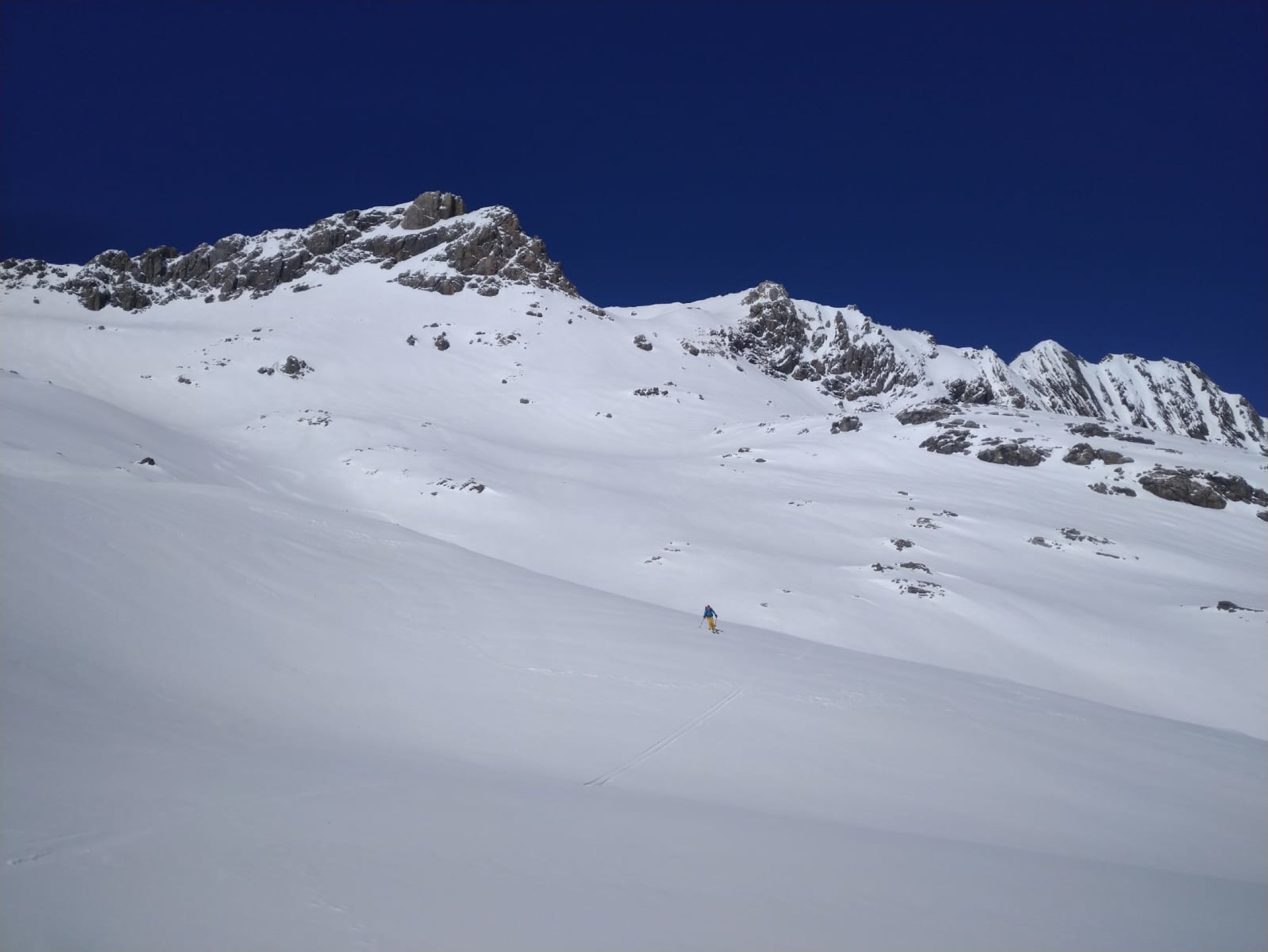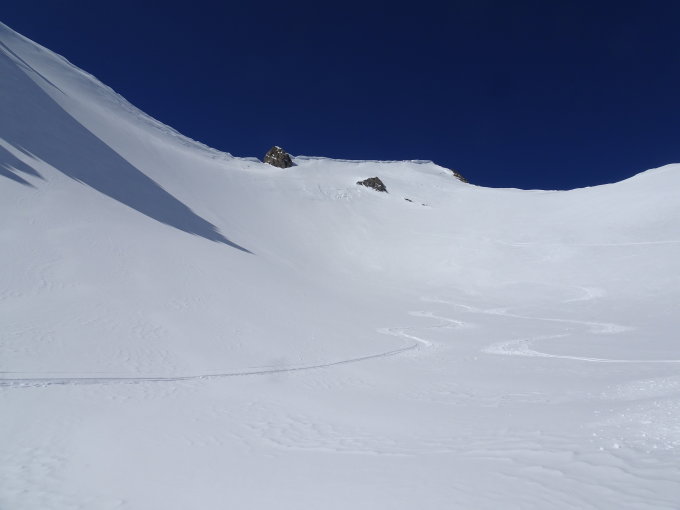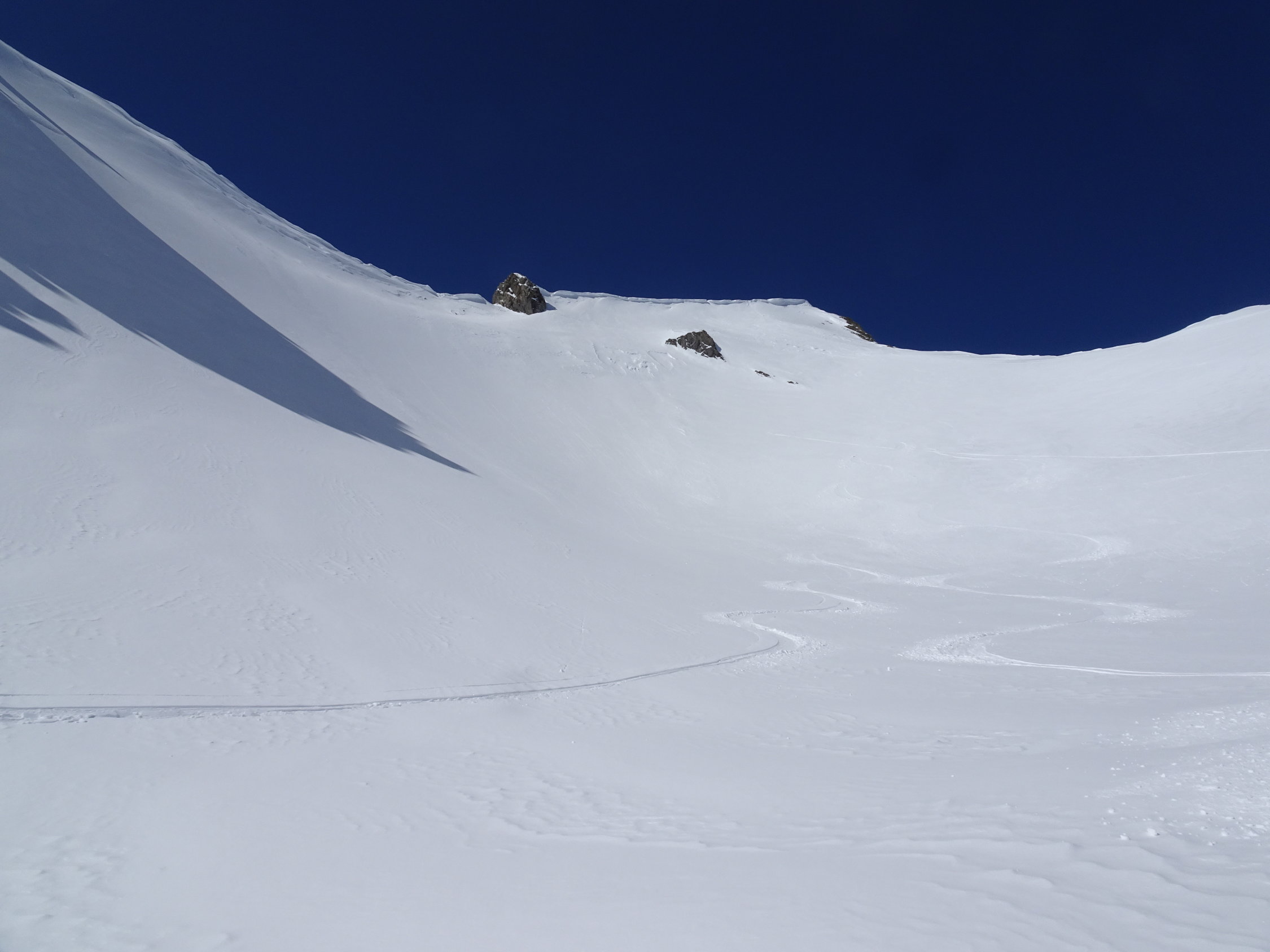 Anstieg in den Kessel zum letzten Hang vor dem Gipfel waren dann Harscheisen doch recht hilfreich.