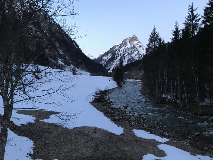 Start um sechs Uhr mit MTB in Hinterstein, Abfahrt vom Gipfel um 10:00 Uhr heute gerade noch rechtzeitig für perfekte Verhältnisse.