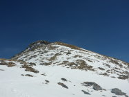 Am Aufstieg zum Gipfel im Fels zwei kurze eisige Stellen: Ausrutschen verboten !