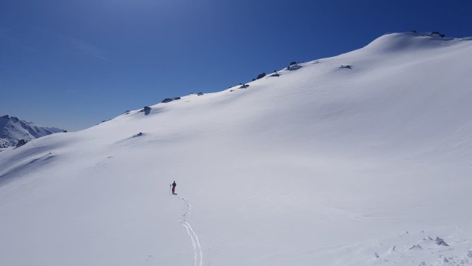 Vom Hospental- Winterhorn bis zum Lucendro harte aber sehr griffige Schneedecke. Vom Skidepot hoch zum Pizzo Lucendro mit gutem Trittschnee. In der Abfahrt vom Lucendro ins Wittenwasserental sogar noch mit Pulver im oberen Teil.