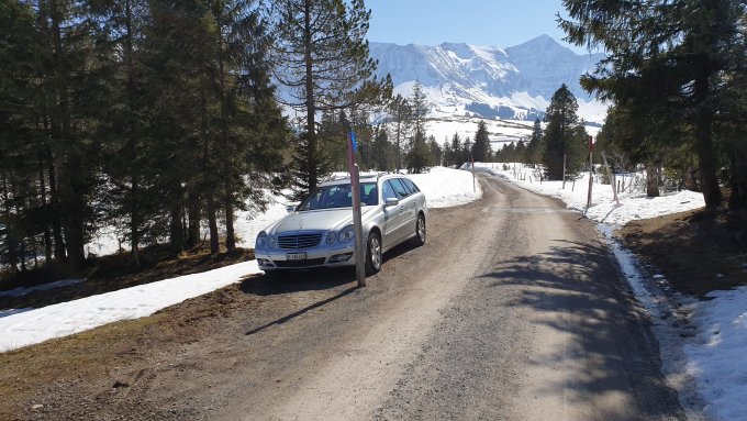 Oben auf dem Gipfel leicher Wind, so dass es eine Jacke brauchte um nach dem Schwitzen nicht zu frieren. Bin recht lange auf der Gipfel gewesen und aum 12.30 Uhr abgefahren. Obere Hältfte sehr schöner Sulz, weiter unten musste man sich an die Schattenpartien halten oder eine günstige Hangexposition aussuchen. Nirgends durchgebrochen.