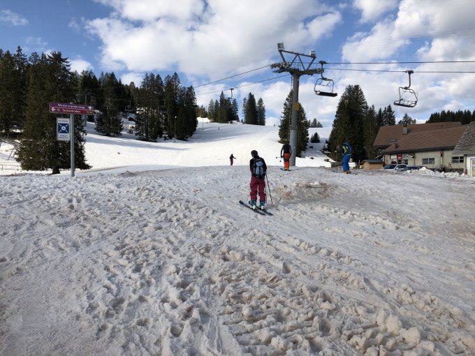 Start um 08:30 bei der Talstation Kabinenbahn auf der Tannenbodenalp. Aufstieg entlang der Skipiste bis Bergstation Maschgenkamm. Danach mit Harsteisen und am Schluss zu Fuss auf den Ziger, 2073MüM.