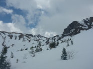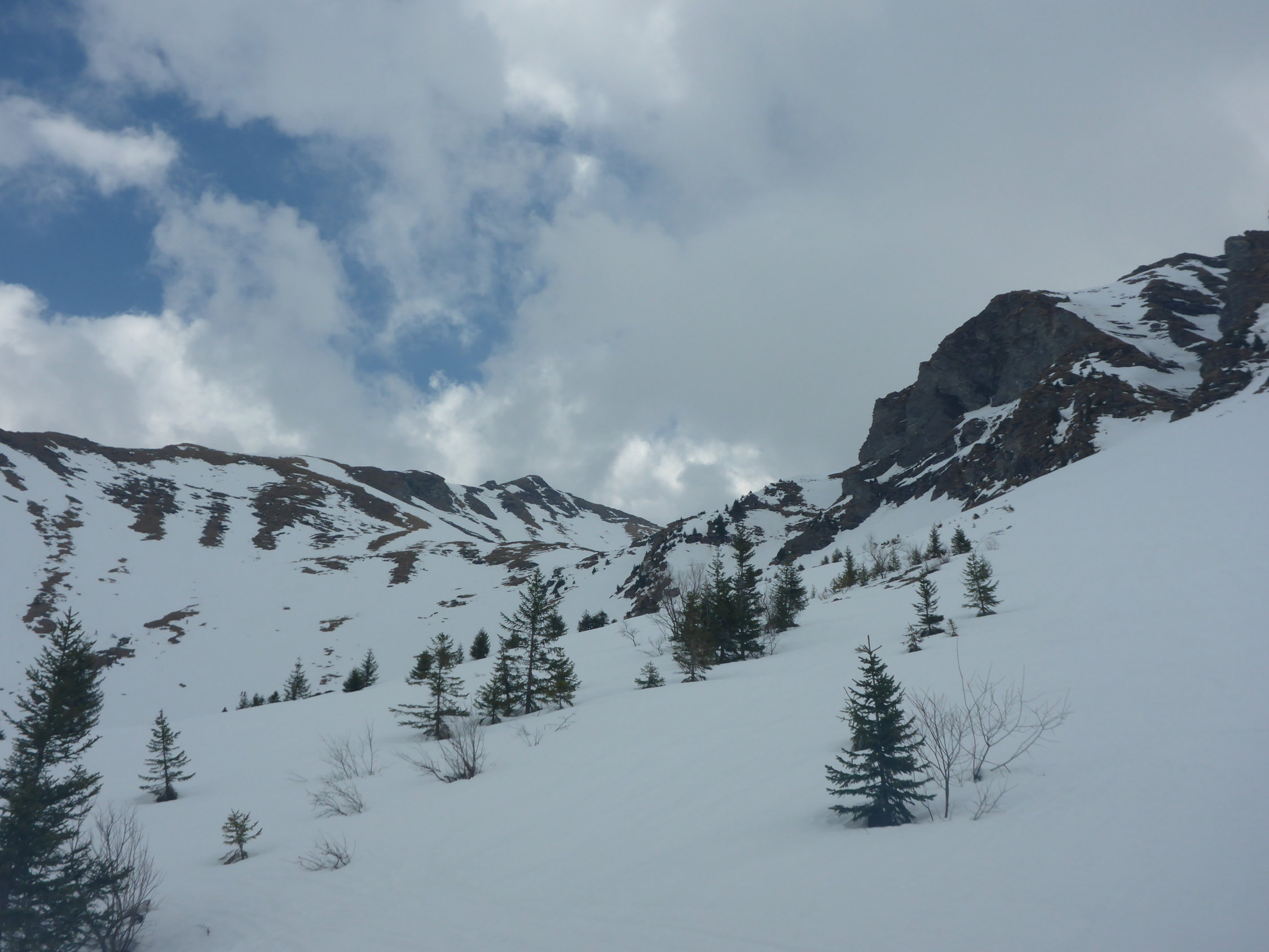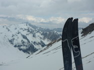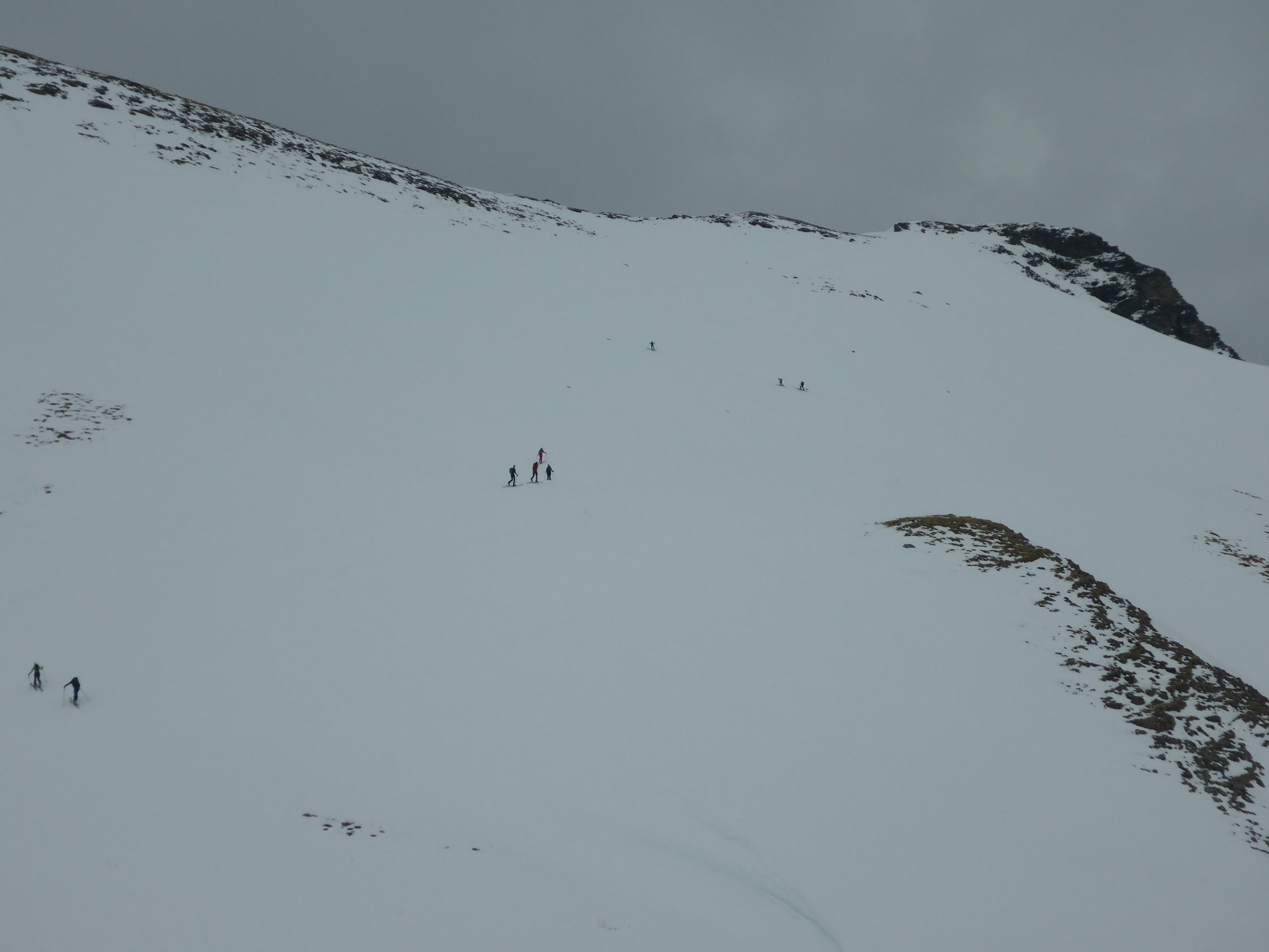 Habe Skidepot auf ca. 2320m gemacht. Nimmt man mehrere Graspassagen in Kauf kann man sich auch noch bis auf den Grat hochmogeln.