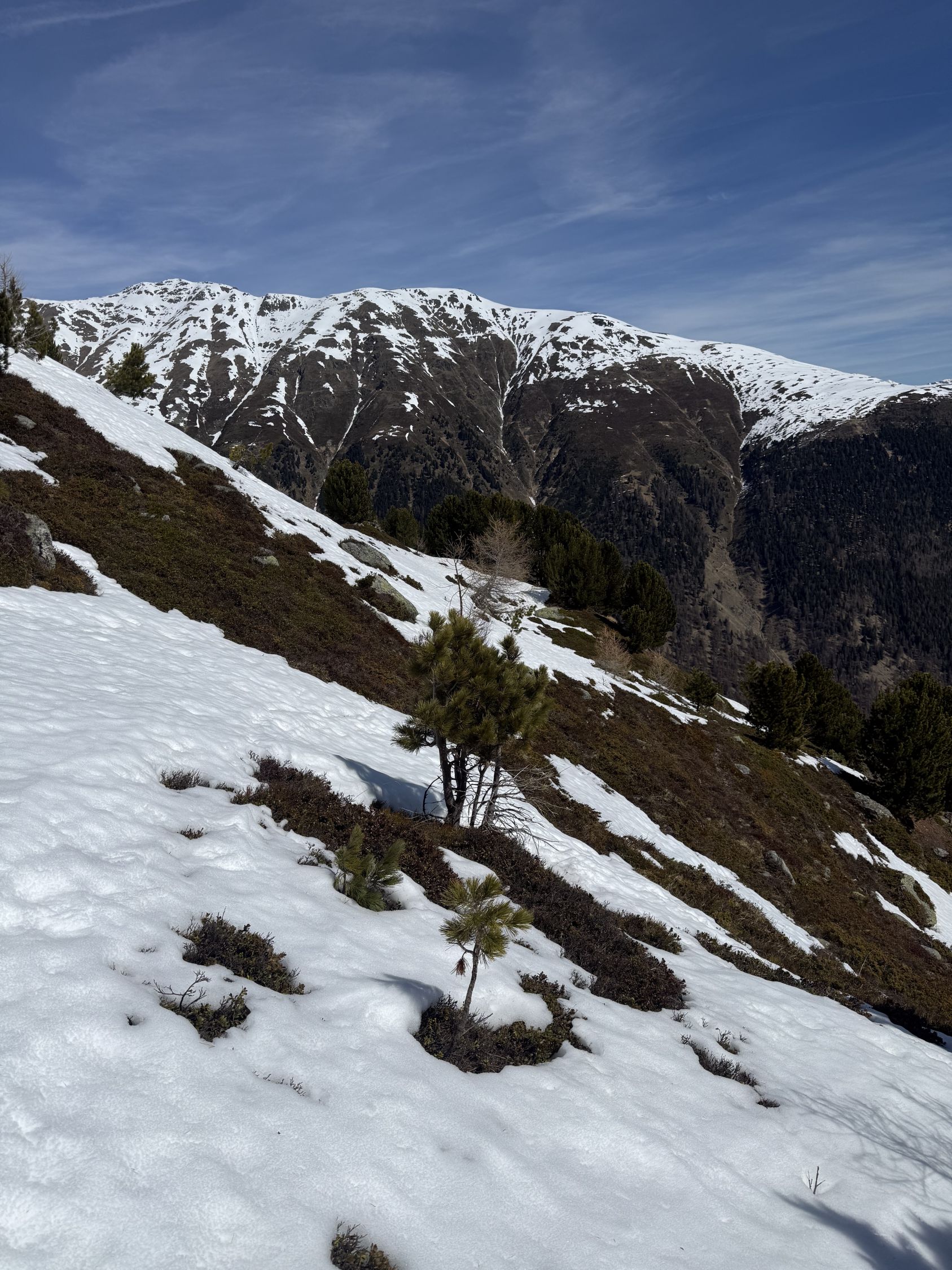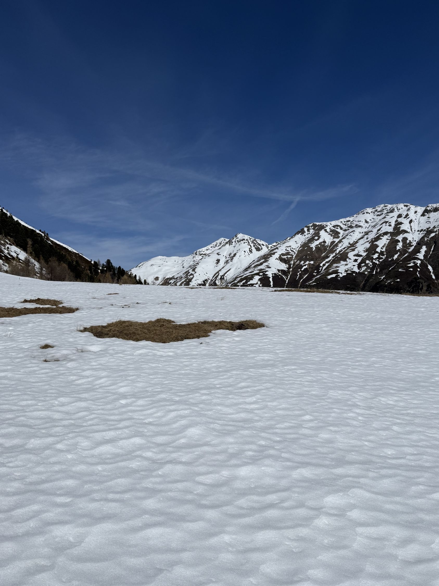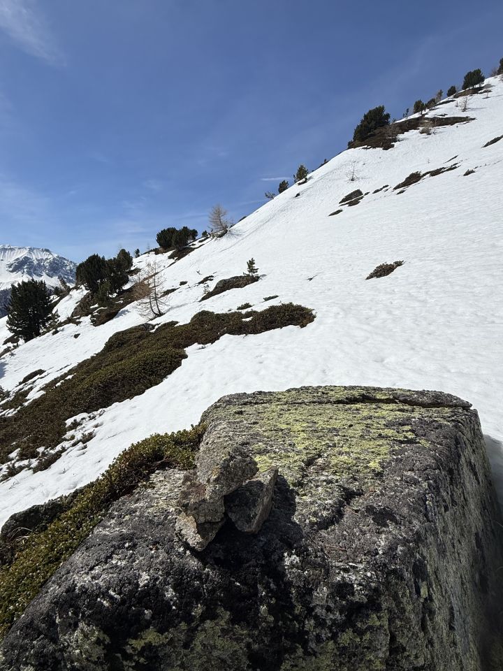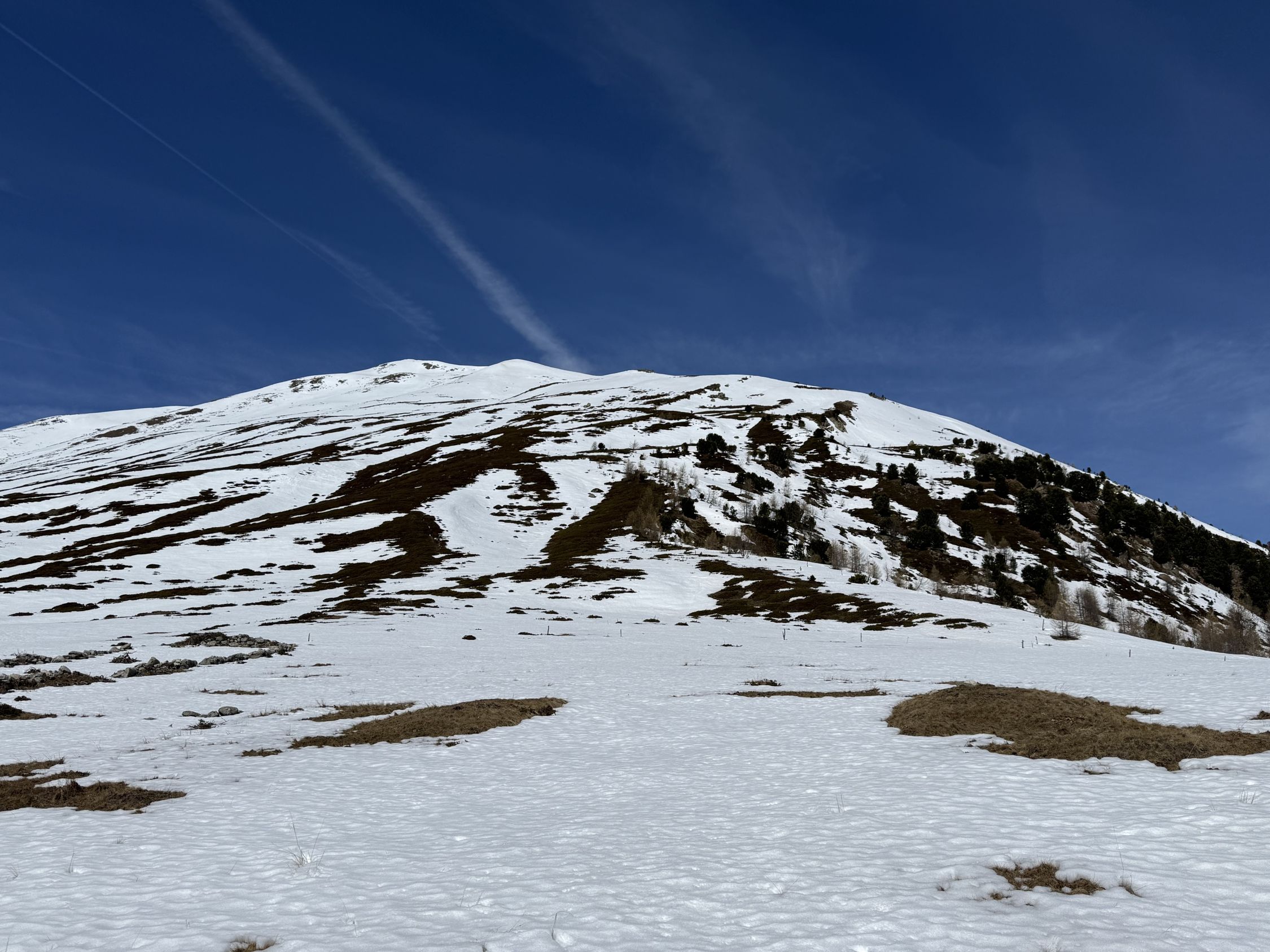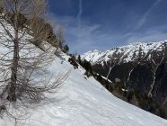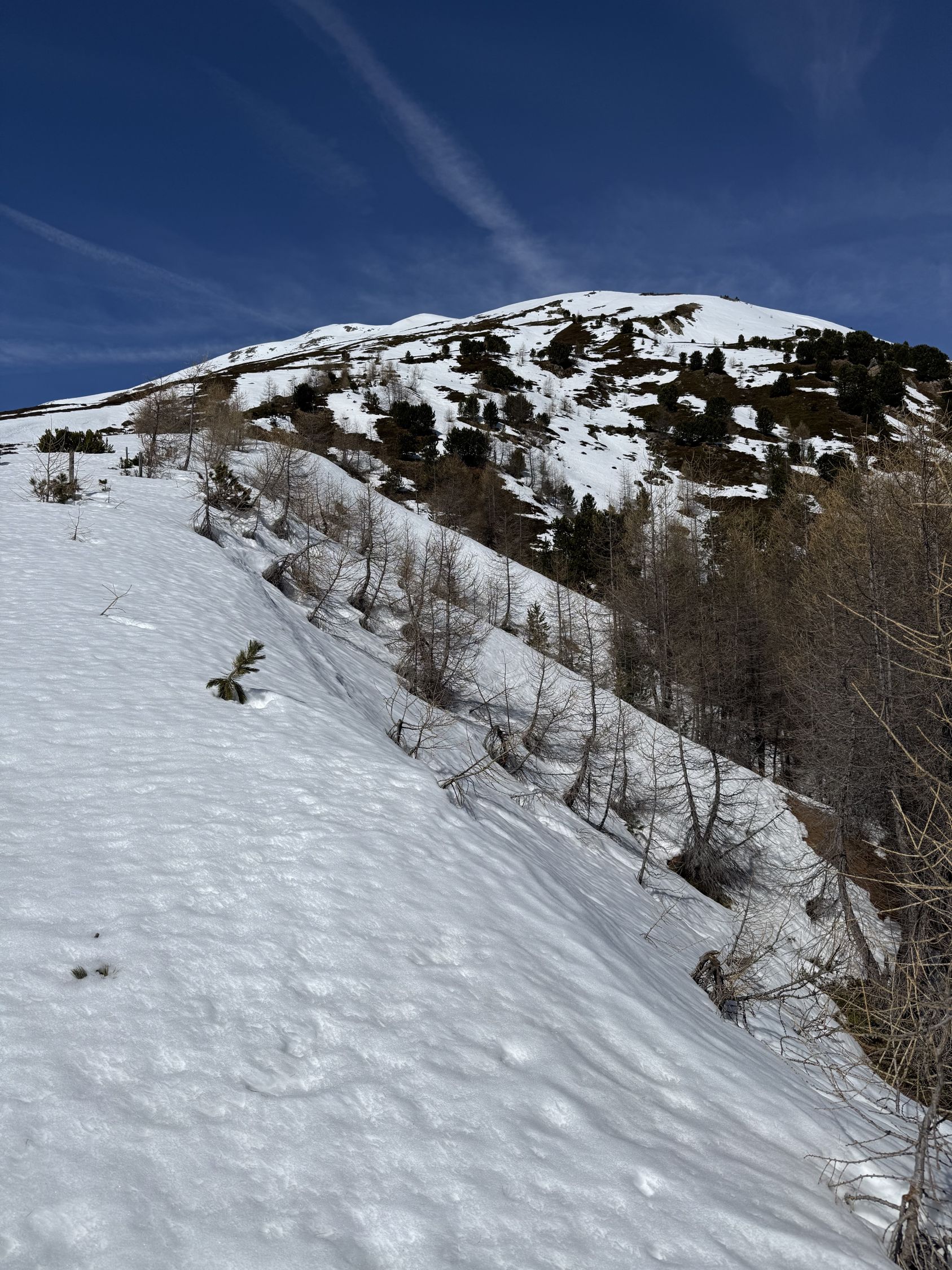 Wir wollten eigentlich nach Cavaglia mit der Berninabahn RhB, leider war der Zug ab Samedan dermassen verspätet dass wir umdisponiert haben. Es ist ja ein Weglein in Swisstopo eingezeichnet zum Munt d‘Arpschella, mir war schon bewusst dass es in der Flanke viel Schnee haben kann aber ich habe es einfach probiert, war schöne Tour auch wenn ich das Ziel nicht ganz erreicht habe.
