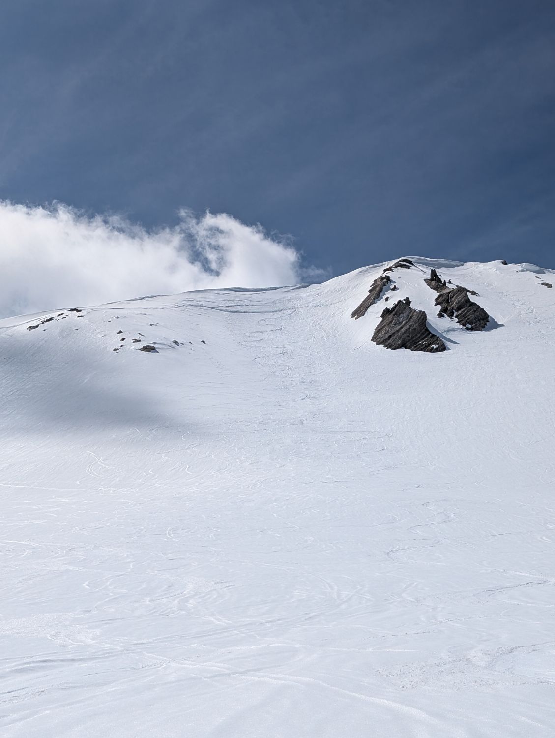 Von Panuöl dann mit reichlich Schnee auf den Wissmeilen. Sehr gut zu gehender Schnee, nur Traverse unter dem Wissmeilen Richtung Spitzmeilen schon recht aufgeweicht, aber noch gut zu gehen. Abfahrt dann kurz nach 12 himmlisch; würde durch den Hang östlich des Gipfels (Spitzmeilen Seite) abfahren, da weniger Sonne exponiert. Bis Alp Fursch dann feinster Sulz, grosse Freude das.