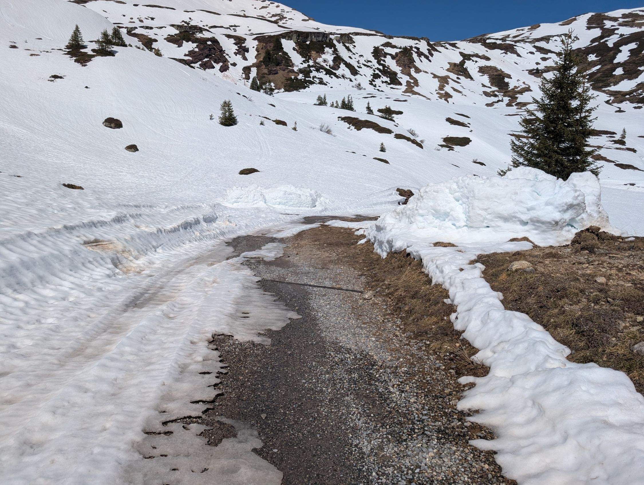 Unten wird's schlechter und von Tannenheim demnächst auch nicht mehr so einfach bis Prodalp. Ziehwag nach Panuöl bereits zum Vergessen. Von Tamnenboden dürfte noch eine Weile gehen.