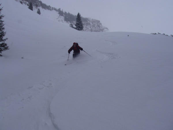 Heftiger Schneefall bei milden Temperaturen begleiteten uns. Da wir die Waldgrenze nicht überschritten, können wir keine Auskunft über die Verhältnisse im offenen Gelände machen. Im Wald waren die Bedingungen durchwegs great! ca. 30-40cm vom Wind nicht verfrachteter pow. An Kammlagen ist die Unterlage stark vom Wind erodiert, und bietet kaum Halt für den Neuschnee. Oberhalb der Waldgrenze ist mit enormen Schneeverfrachtungen zu rechnen, was uns dazu bewog, nicht weiter aufzusteigen. Es lässt sich aber auch in tieferen Lagen momentan powdern, was die Bilder beweisen! for more pics please visit http://rockthepowder.black-river.ch/