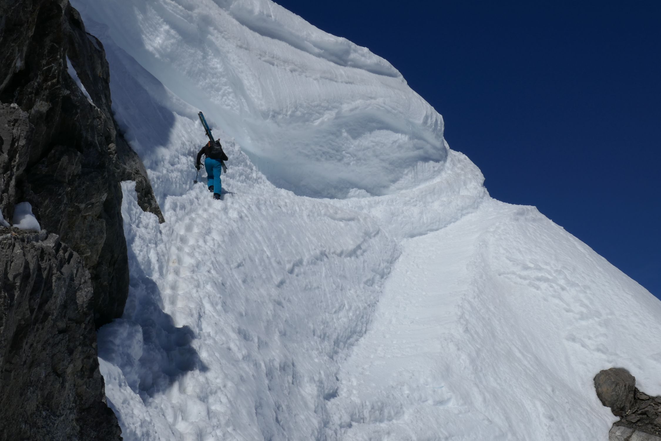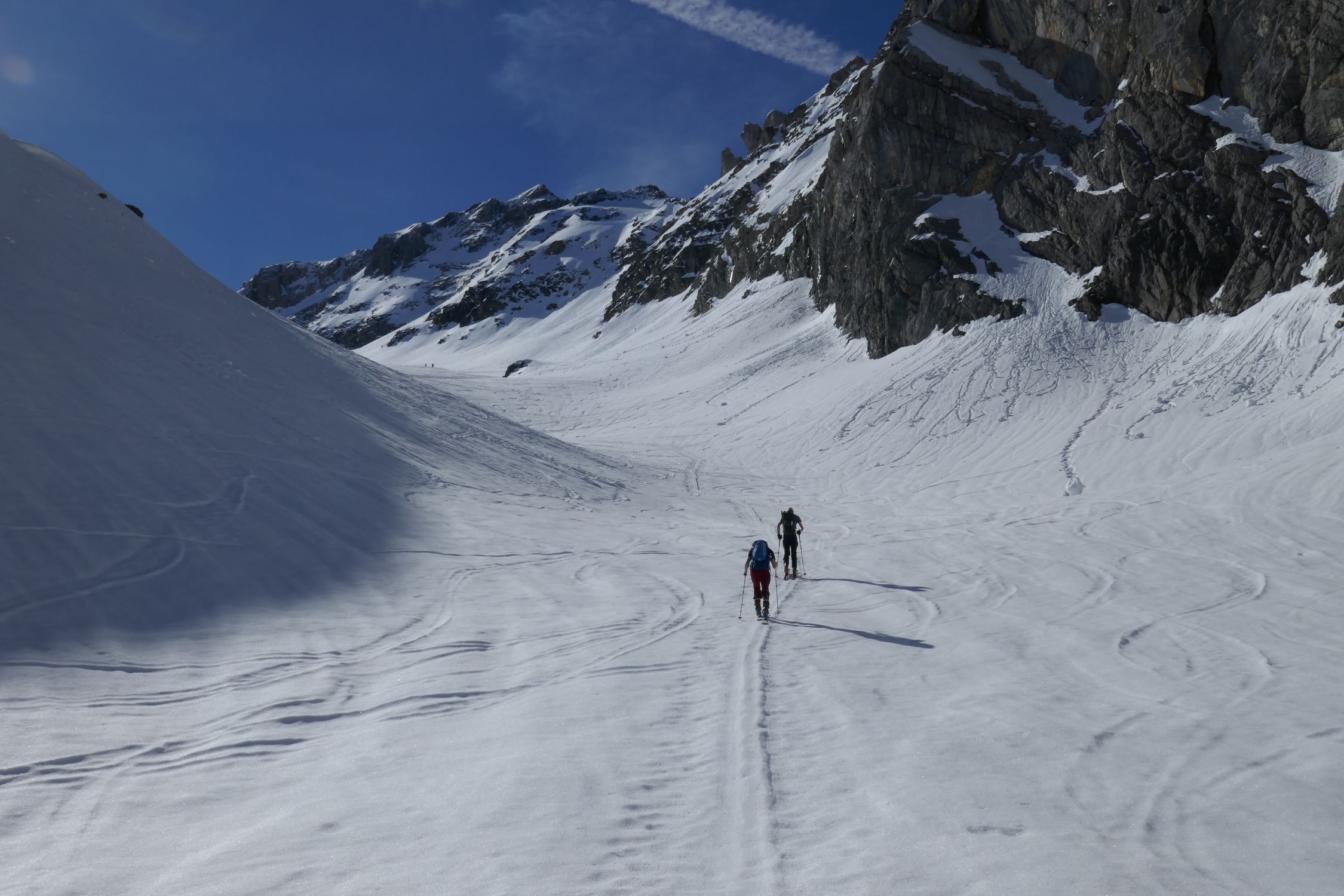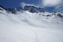 Bei der Abfahrt oben dann etwas ruppelig aber dafür konnten wir oberhalb des Frühstücksplatzes in den Steilhang queren bei der Abfahrt.