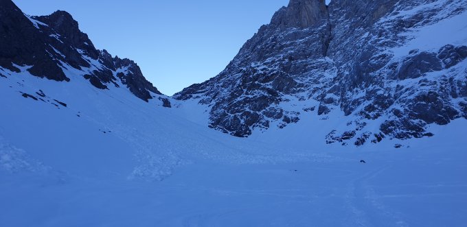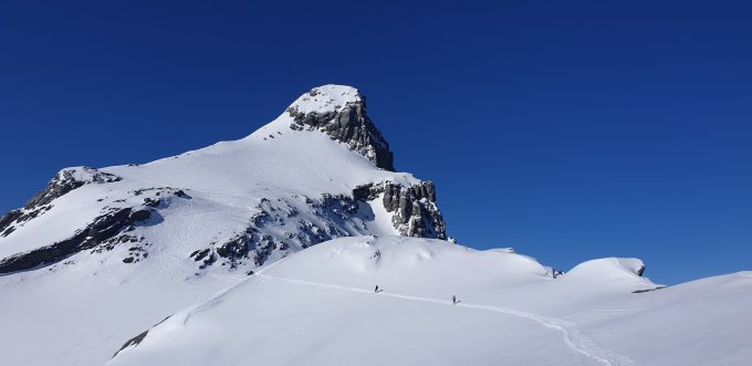 Start der Tour am 6.40 Uhr nach Sitlisalpbahn, schon nach wenigen Metern konnten die Ski montiert werden, mitte Chälen ein grosser Lawinenkegel, aber man konnte mit Ski gut bis Ruchenchälenpass hochsteigen, ab Pass dann Puverschnee bis Skidebot, der Fussaufstieg war ein gut zu machen, die Abfahrt durch die Ruchchälen am 12 Uhr noch sehr hart, unten dann bester Sulzschnee.