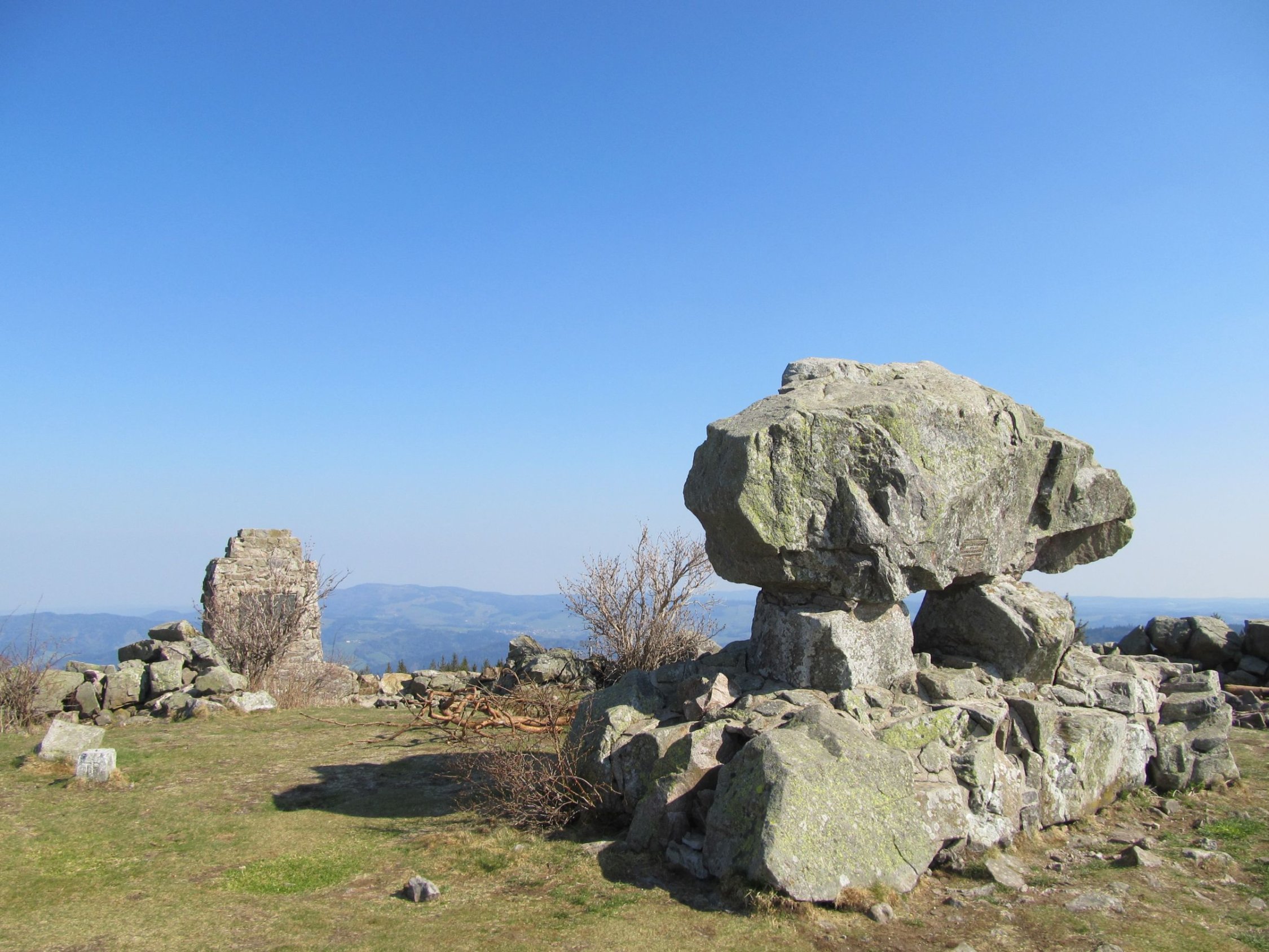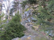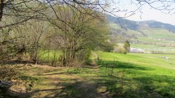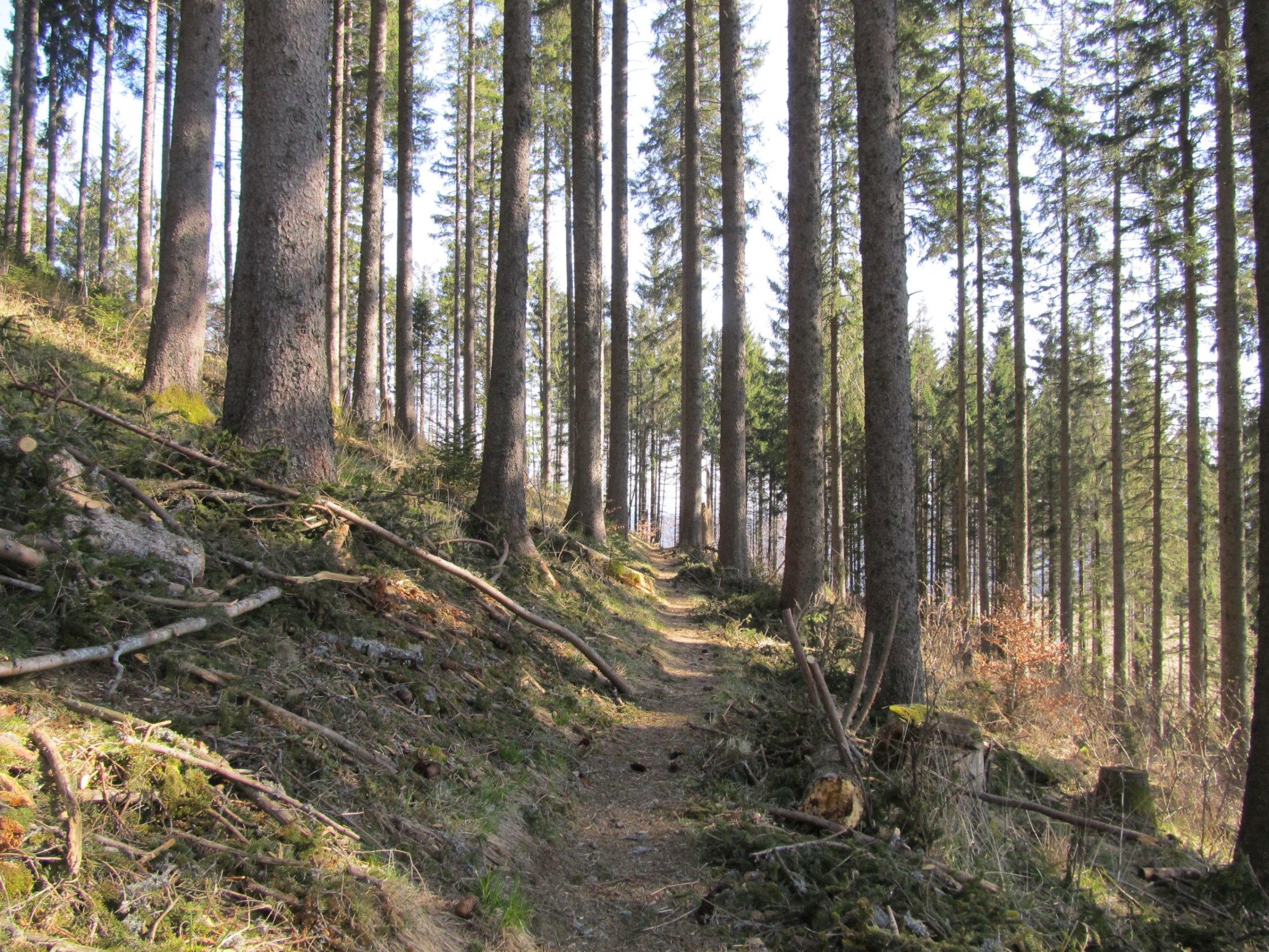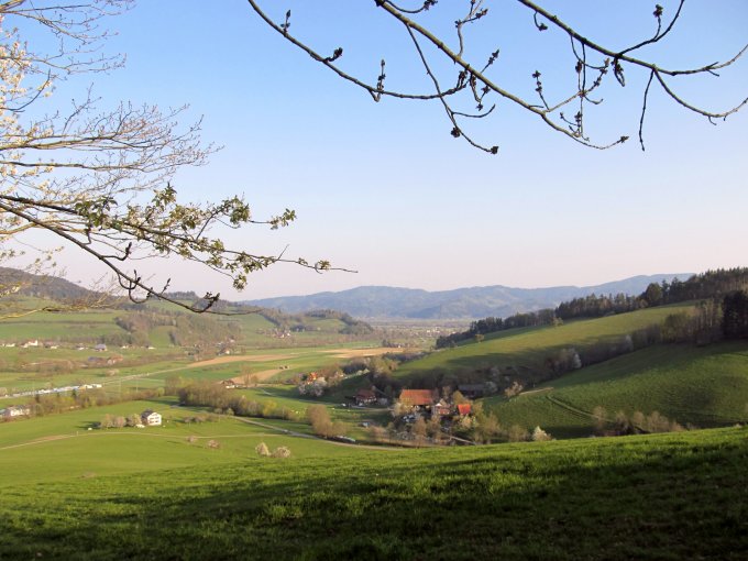 Ein prächtiger Frühlingstag, zwar anfangs unten mit dem Talwind am Bach noch frisch, dann aber immer milder werdend. Nur am Gipfel ein etwas unangenehmer Ostwind, dem wir bei der Rast hinter einer Blocksteinmauer ausweichen konnten. Bei der Rückkehr ins Tal war's fast sommerlich.